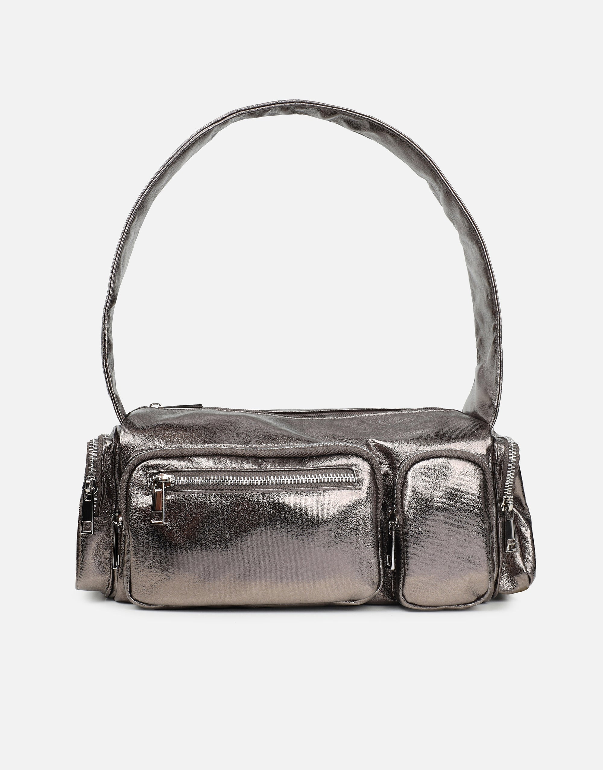 Pewter Metallic Barrel Utility Shoulder Bag