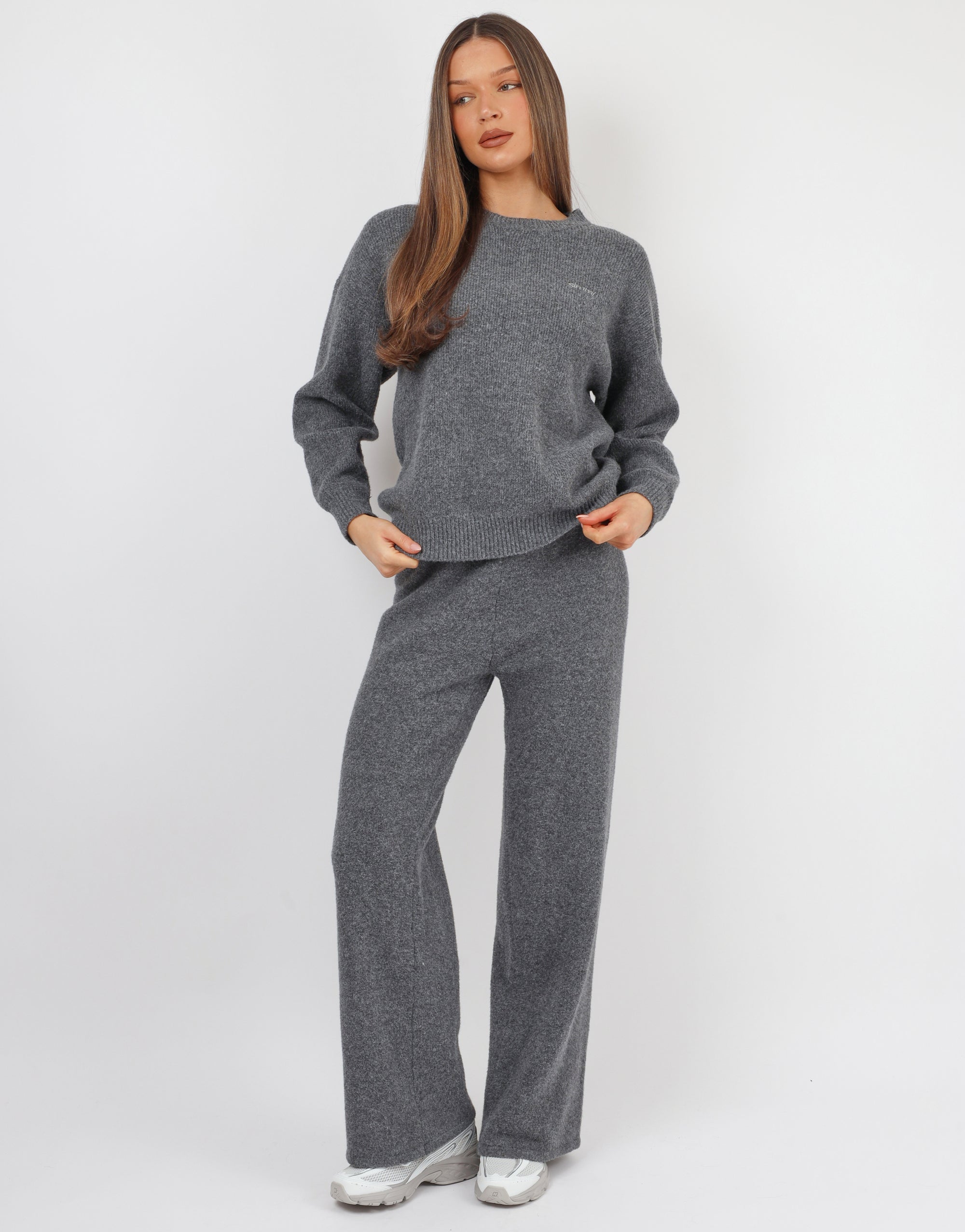 Soft-touch wide-leg trousers in a dreamy dark grey tone, the perfect mix of comfort and style. Pair with the matching faye jumper for a laid-back, coordinated look you’ll live in.