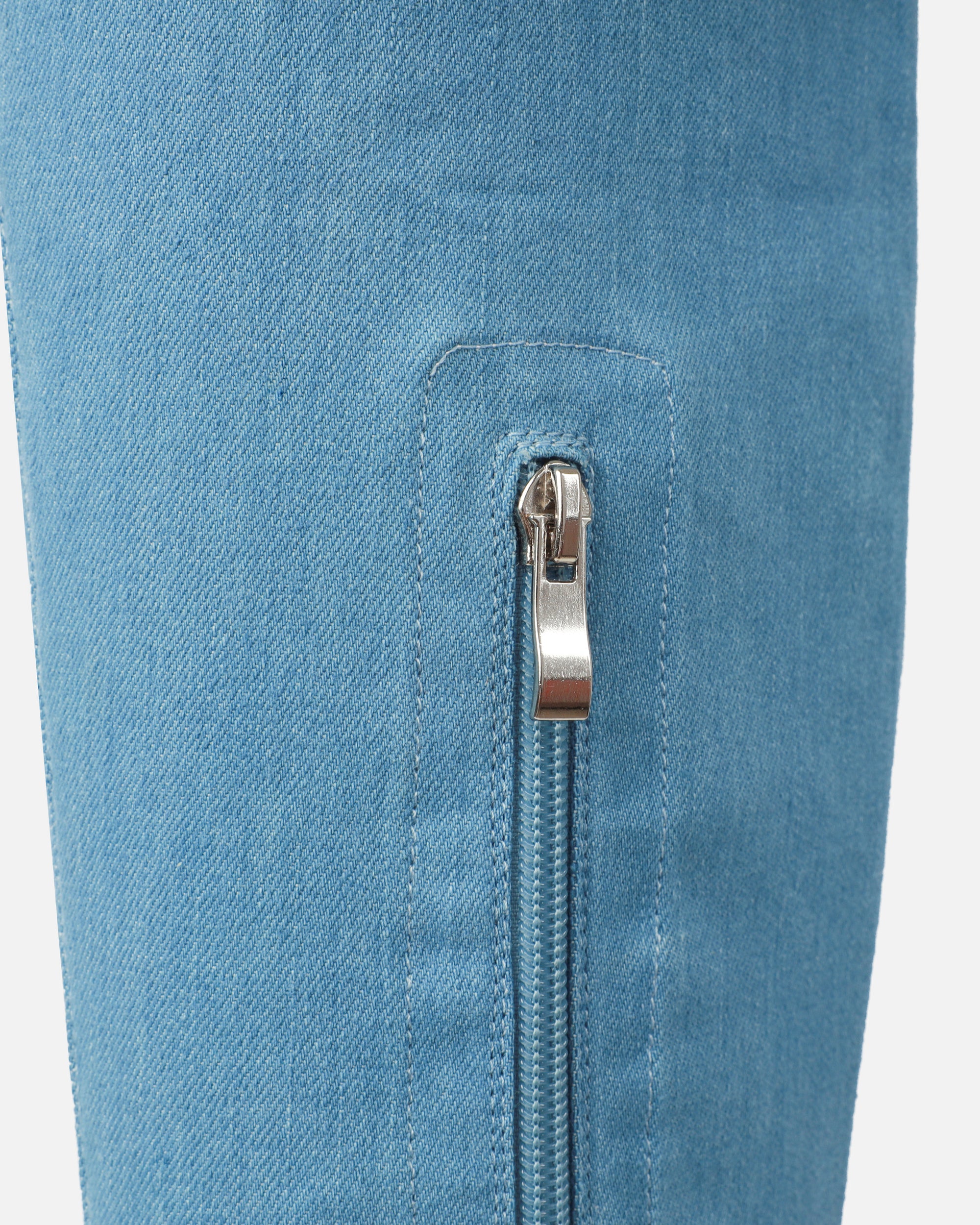 Blue Denim Stretch Pointed Toe Thigh High Stiletto Boots