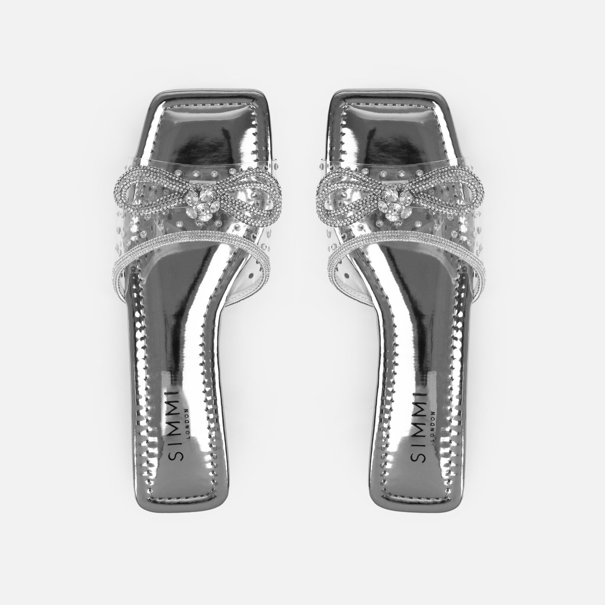 It's always sparkle season at SIMMI and these flats are giving us all the sparkles. Featuring a square toe, diamantes and diamante bow trim on a clear front strap. You'll be wearing these for those dressy occasions.