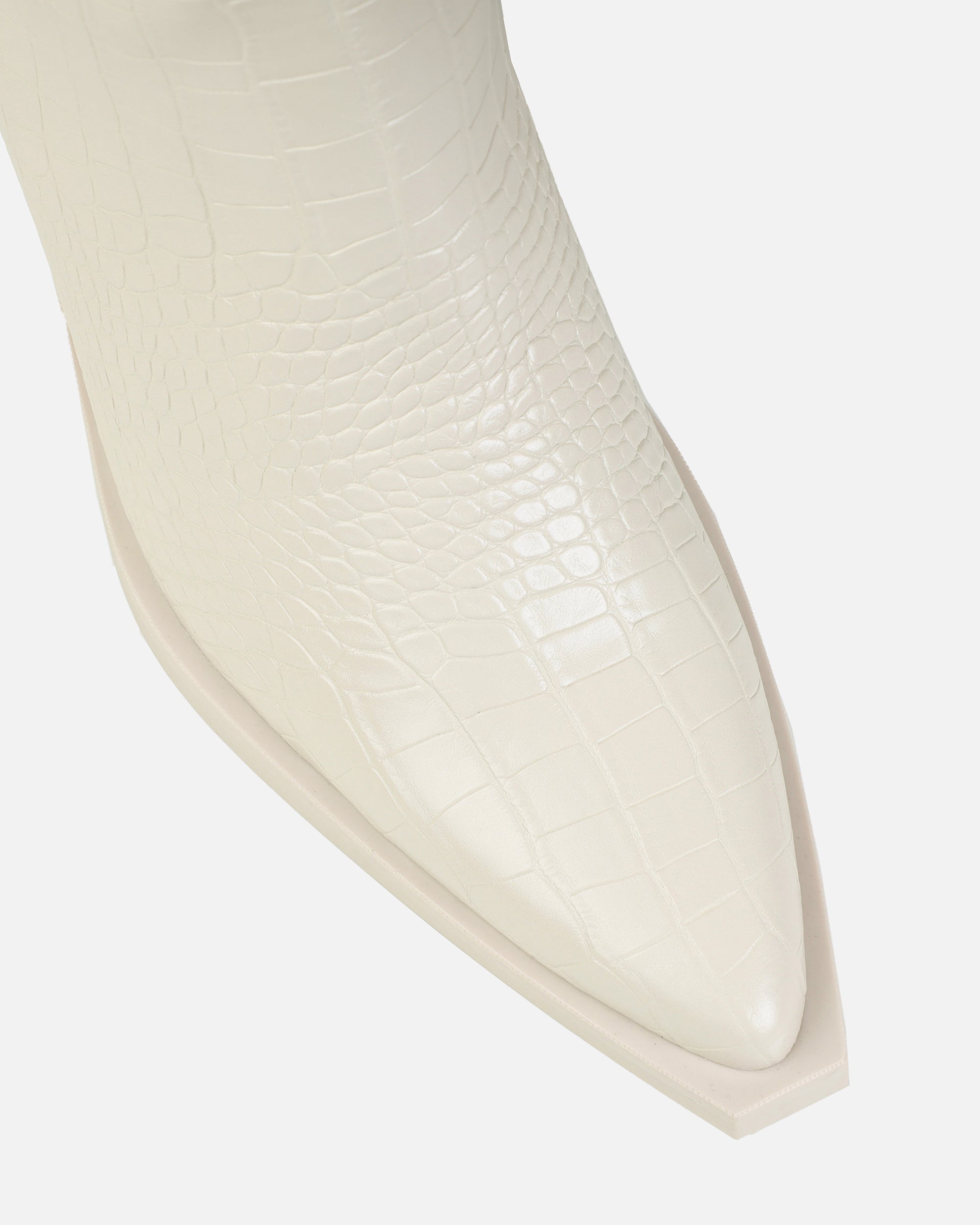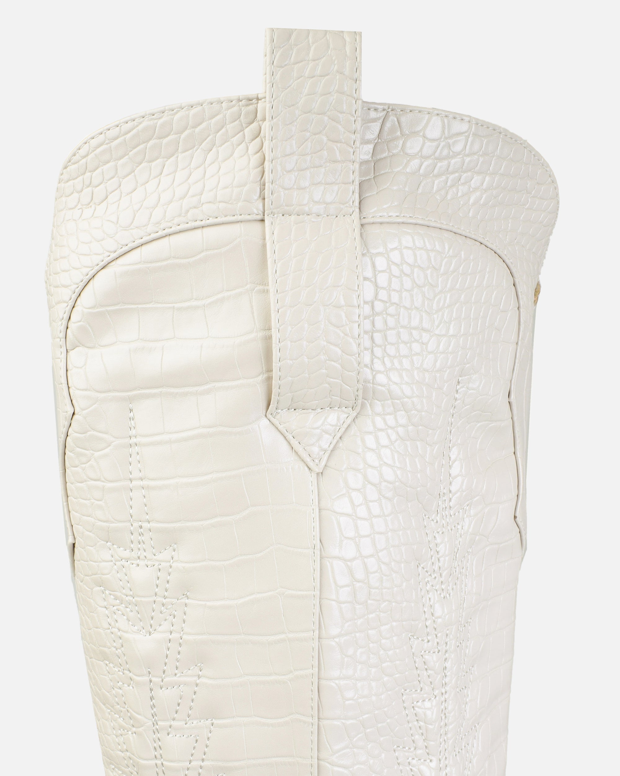 Say howdy to these over the knee western boots. Featuring a pointed toe, embroidered western pattern, side pull tabs and a block heel. Wear these to your next festival.