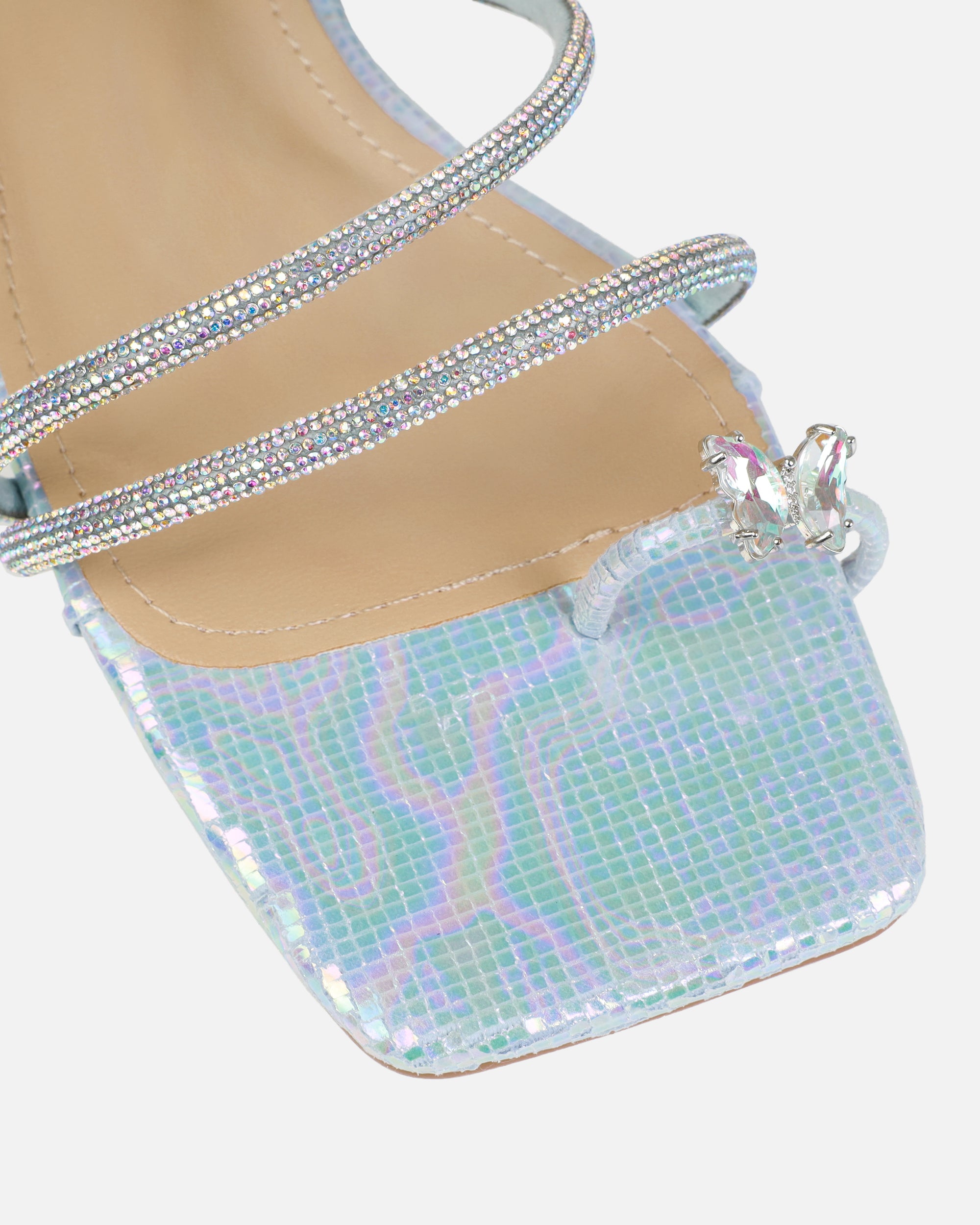 Blue Butterfly Toe Thong Diamante Flat Sandals
