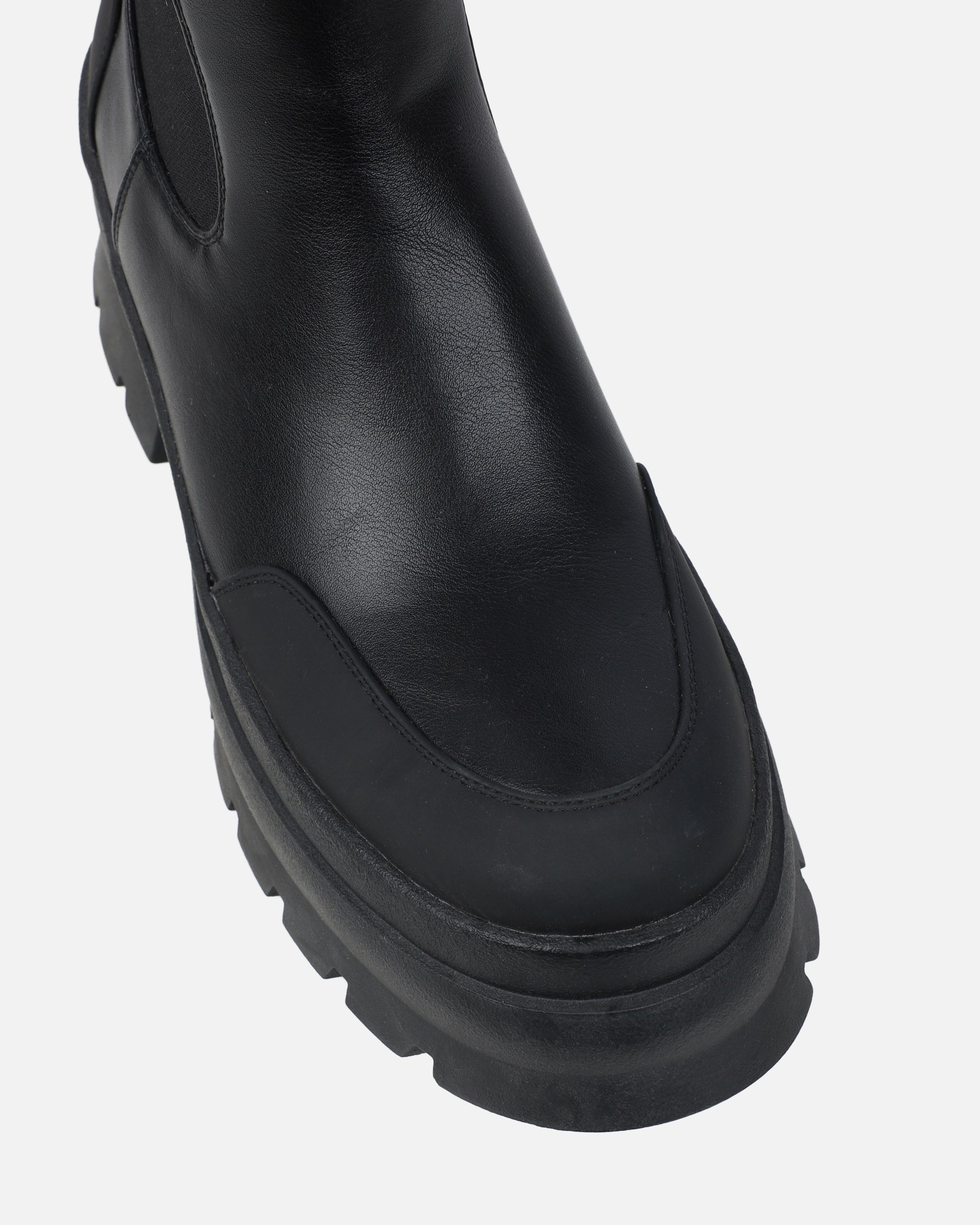 The boots you need all season. Featuring a chunky sole and a faux leather finish. Wear these flat chunky ankle boots with your fave leather looks.
