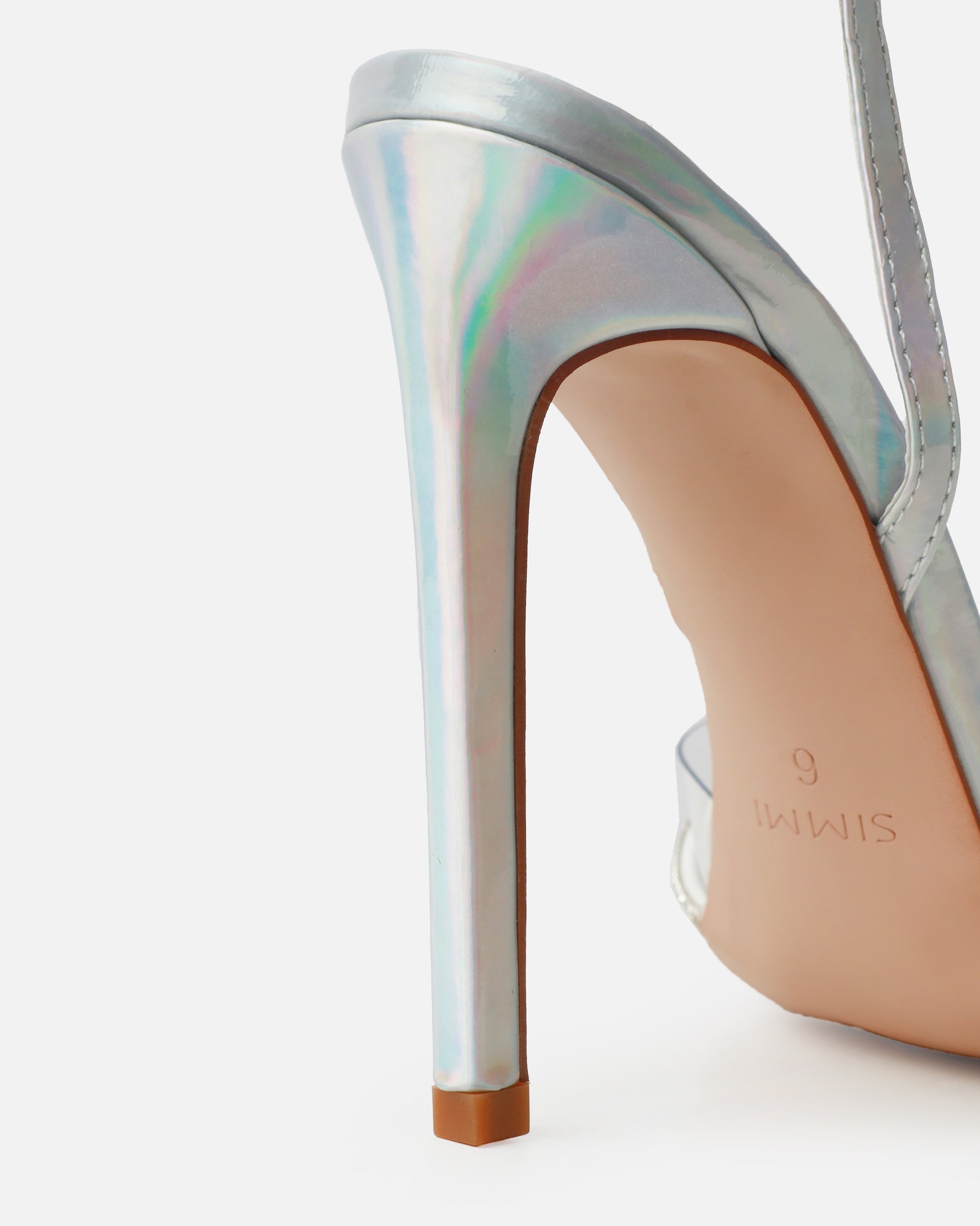 Sitting pretty in these clear diamante heels. Featuring a clear pointed toe, diamante crossover front trim, ankle buckle strap and a stiletto heel. Pair these with matching diamante accessories for extra sparkle.