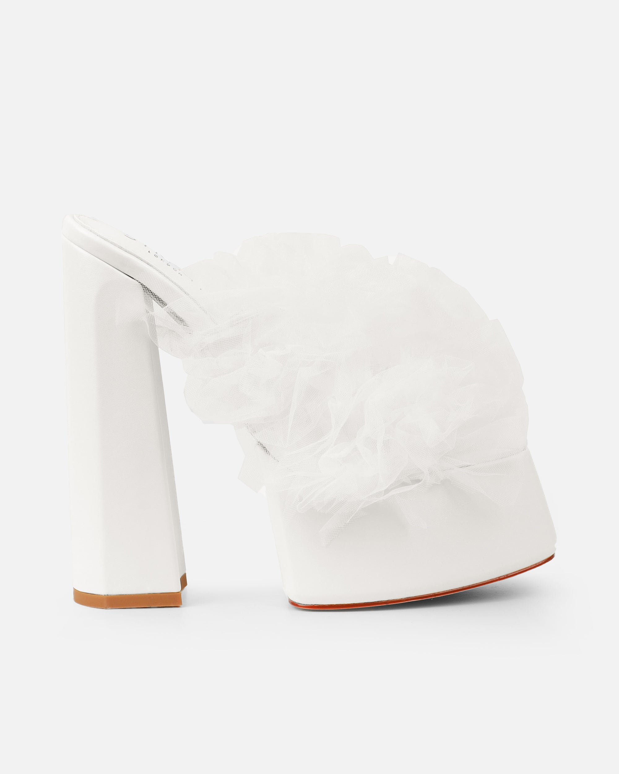 Get ready to turn heads with these tulle platform heeled sandals. These are the perfect combination of sass and class. The tulle adds a flirty and feminine touch, whilst the platform adds some serious attitude to your look. Perfect for a night out with the girls or a date night with your special someone.