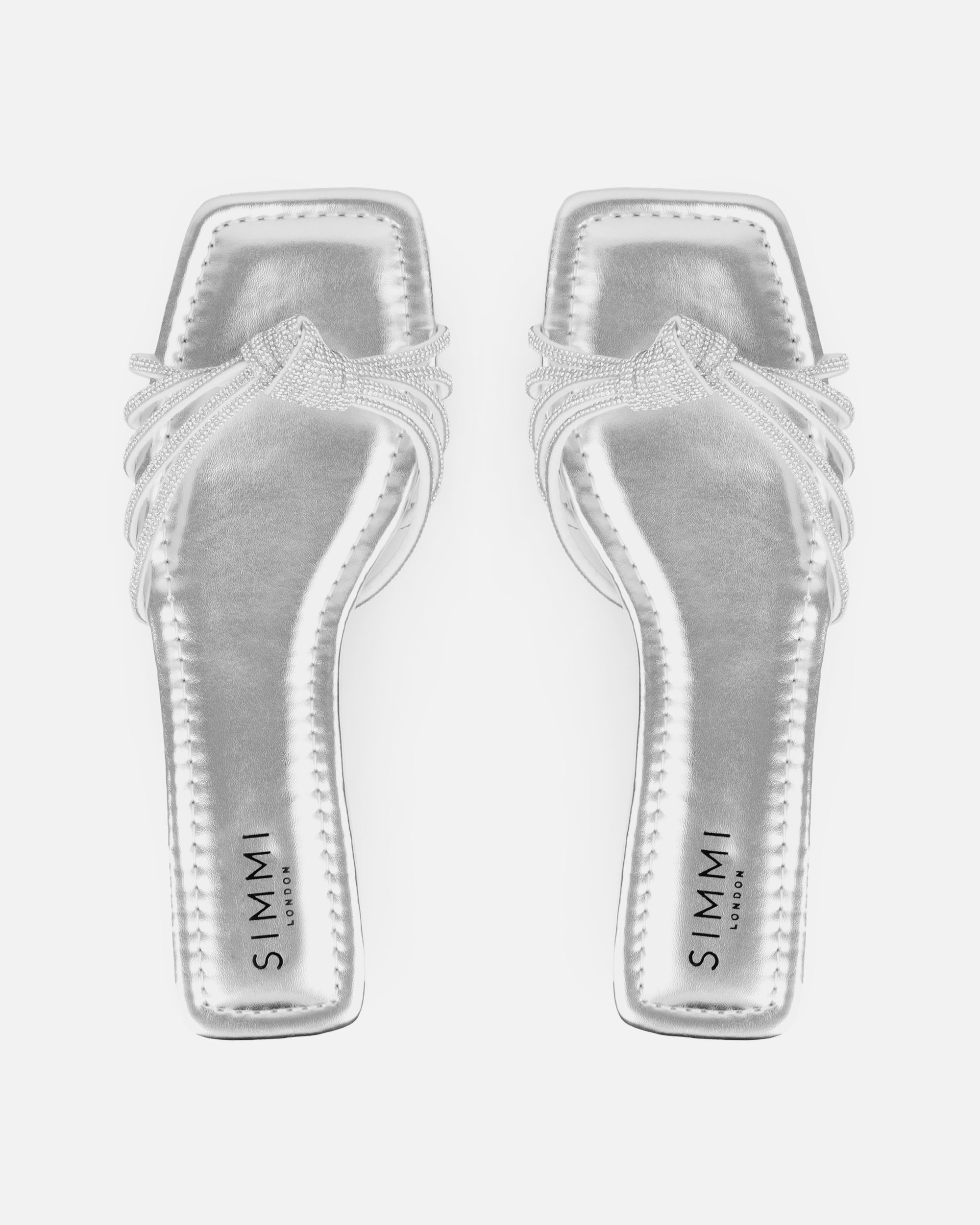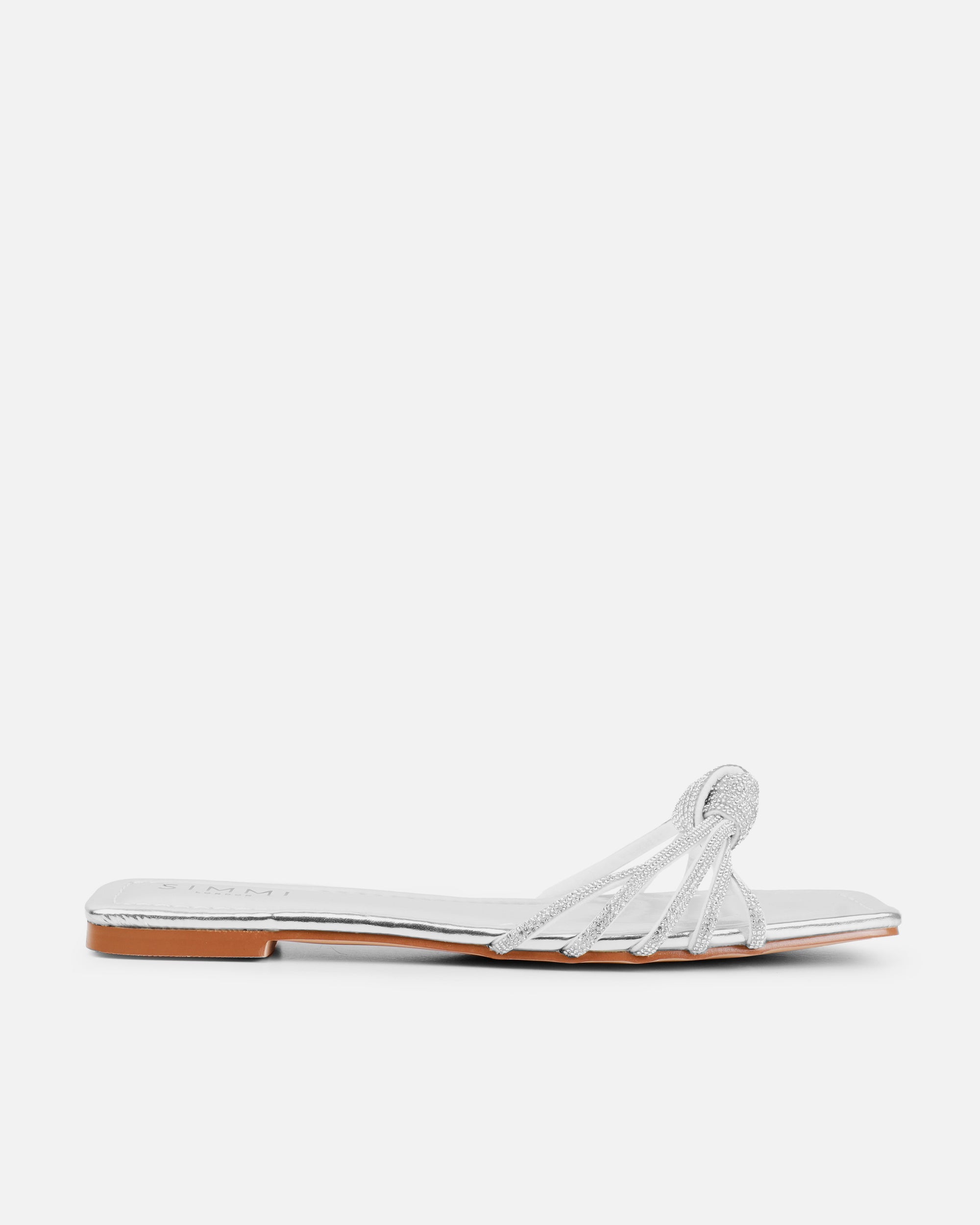 Wide Fit Silver Diamante Knot Flat Sandals