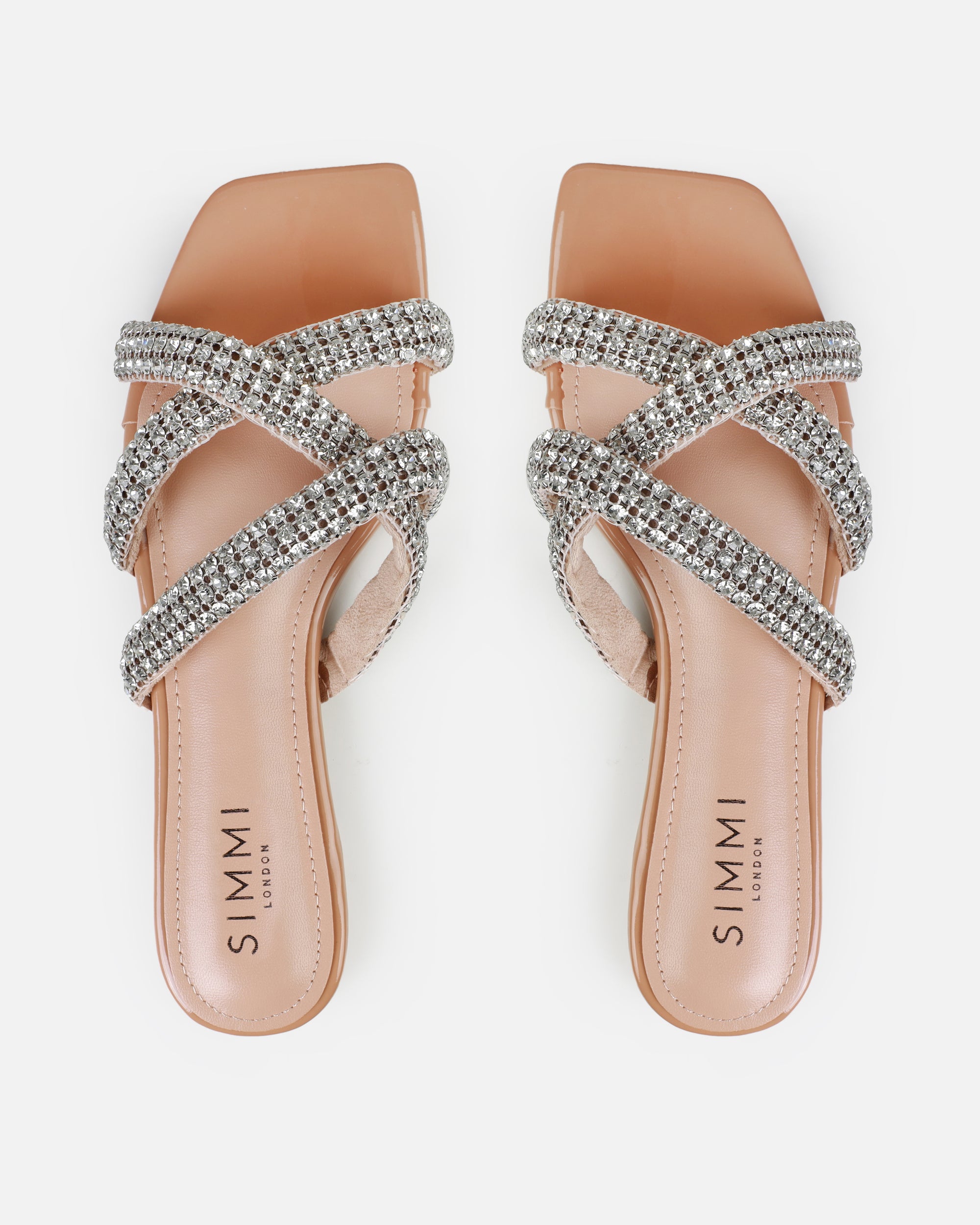 Look cute with minimal effort in these diamante flats. Featuring a square toe and multi diamante crossover straps. Style them with your summer looks.