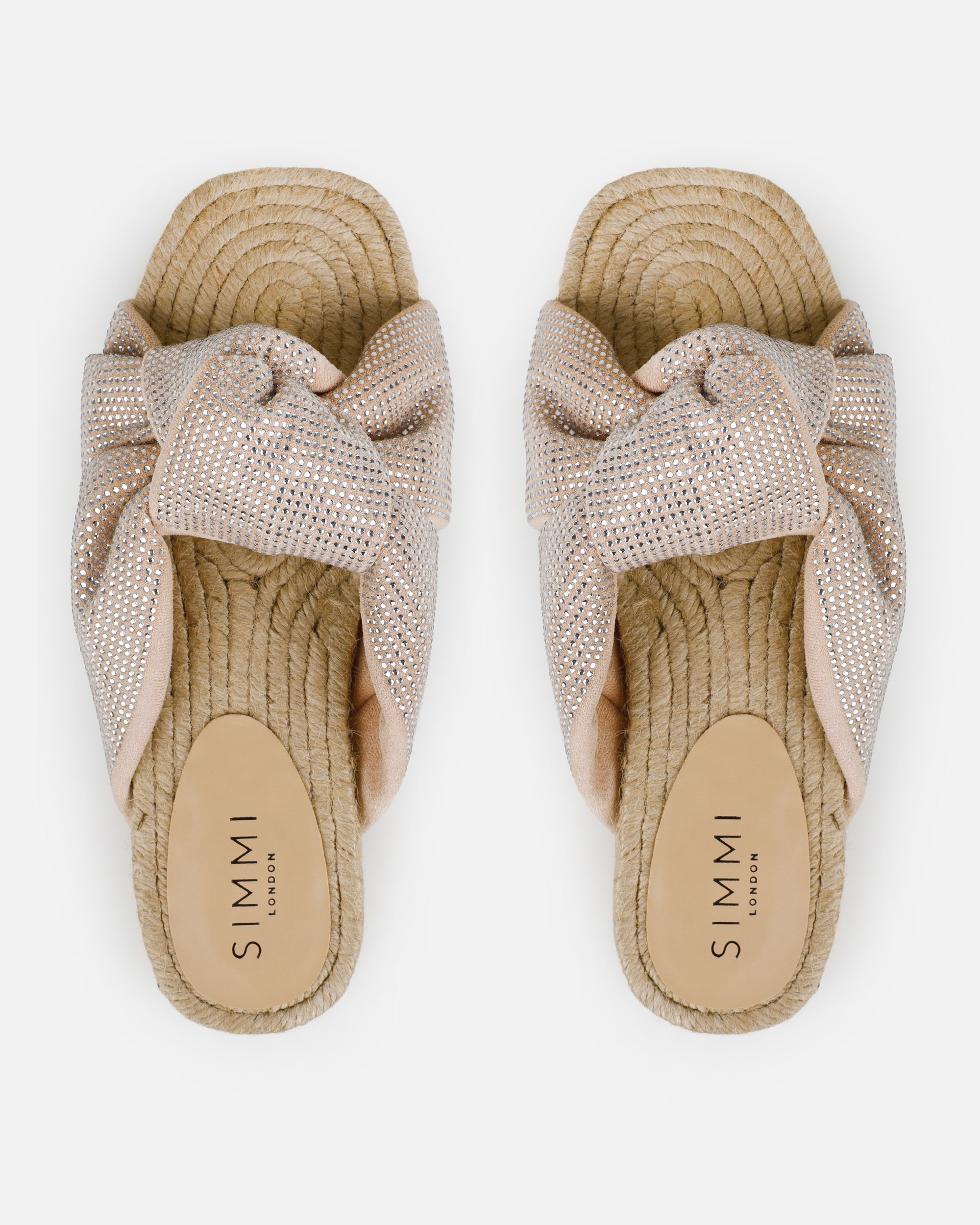The espadrille flats you need this season. Featuring a front knotted strap with small gem diamante stones and an espadrille sole. You'll be wearing these with all your summer fits.