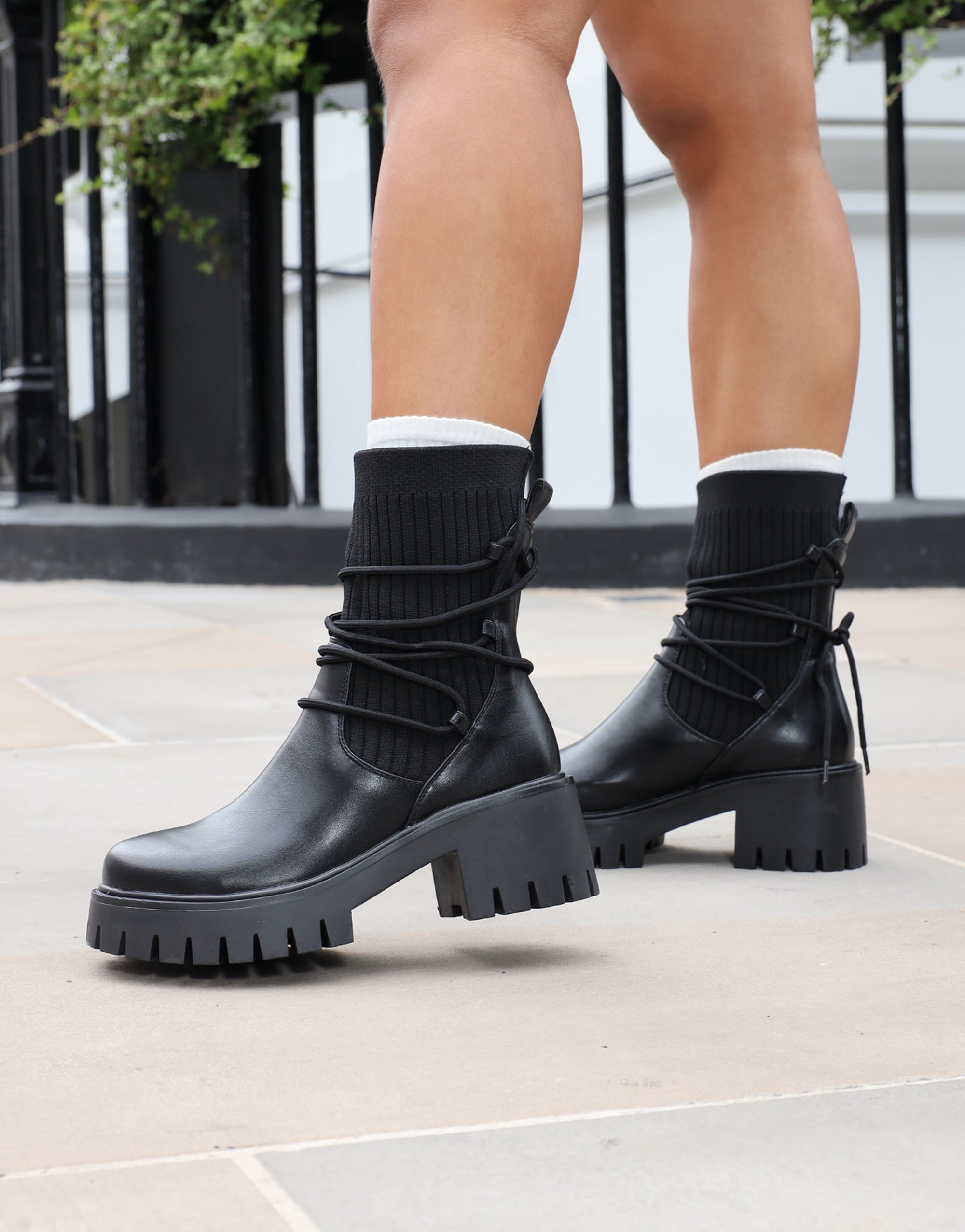 Just as essential as a classic LBD, our Bance black boots are a must-have for your shoe options. With a chunky sole design, lace-up detailing and PU finish, we love teaming these with an off-duty co-ord for an effortlessly edgy look.