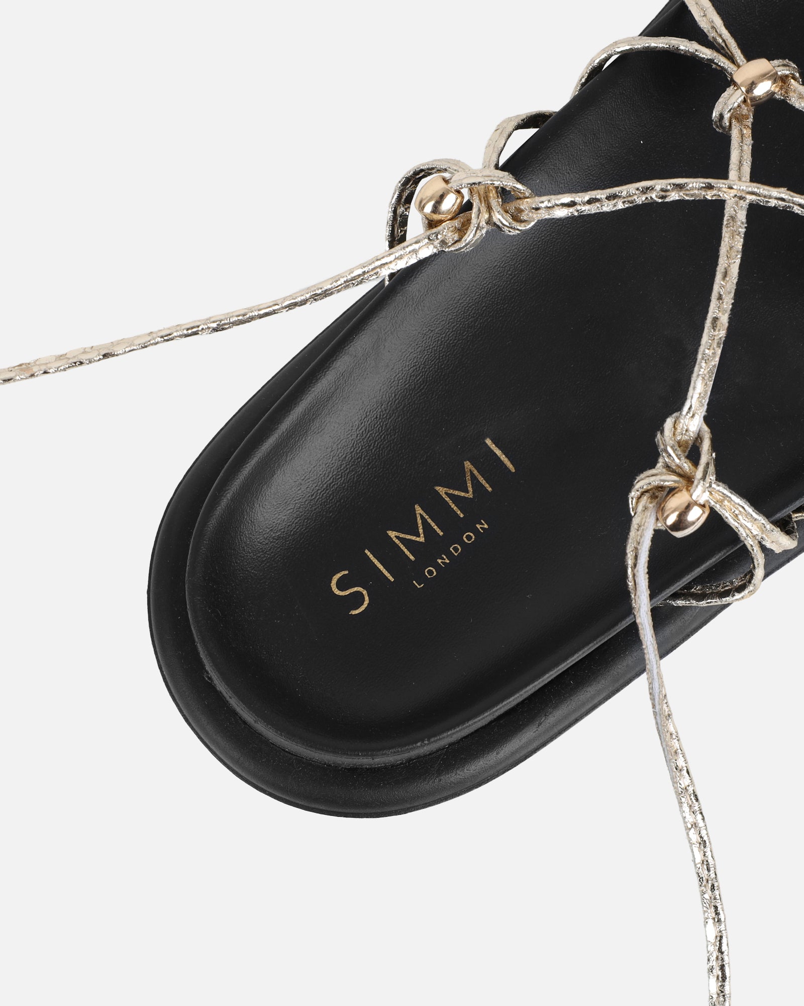 Featuring delicate crisscross straps with gold bead detailing, our Billie Gold Rope Tie Up Sandals wrap effortlessly around the leg. Designed with a chunky sole for all day comfort, they offer the perfect balance of style and ease. Whether you're heading to the beach or a brunch date, these versatile flats are a warm weather essential!