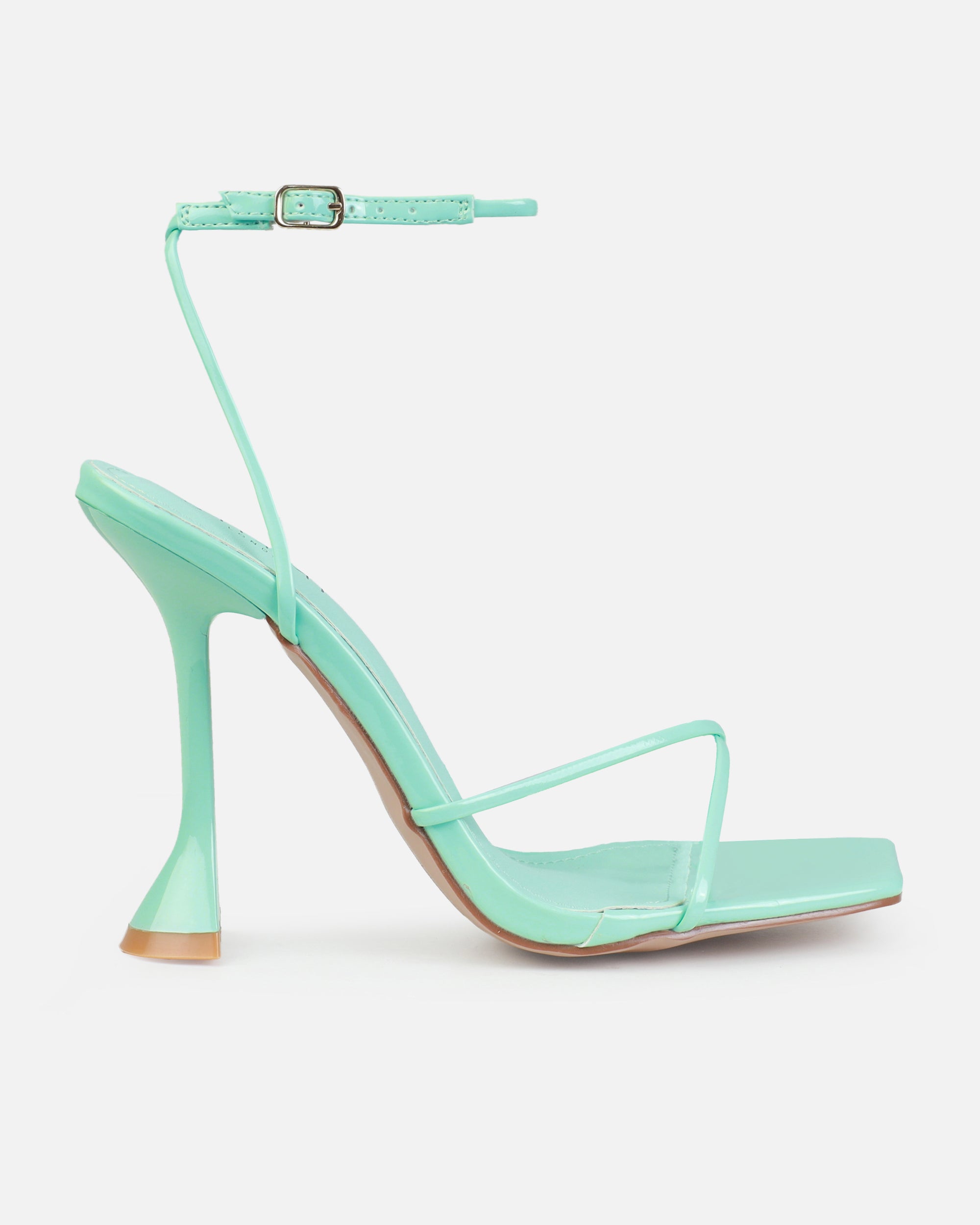 The heels you 100% need. Featuring a square toe, crossover front strap, ankle buckle strap and a flared stiletto heel. Team these with cargos, wide leg trousers or slouchy jeans.