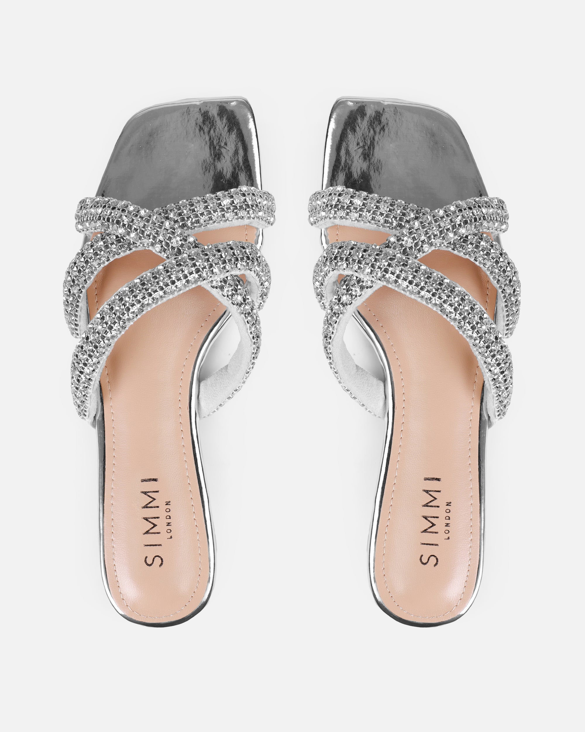 Look cute with minimal effort in these diamante flats. Featuring a square toe and multi diamante crossover straps. Style them with your summer looks.