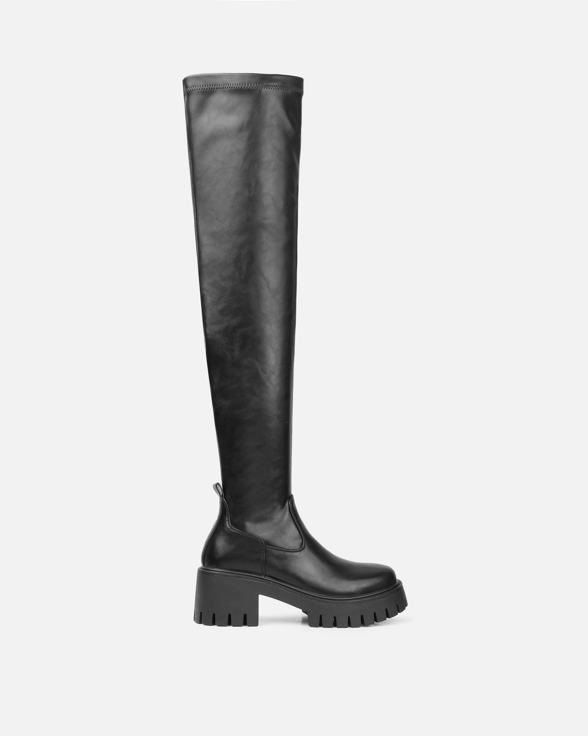 Update your essentials this season with our Bjorn platform boots. Sitting high on the thigh with a slim fit, our Bjorn boots are our current go-to for a sleek yet subtle option to elevate an outfit. They feature a chunky platform with cleated edges and zip fastening. Style yours with a casual outfit for an edgy finish.