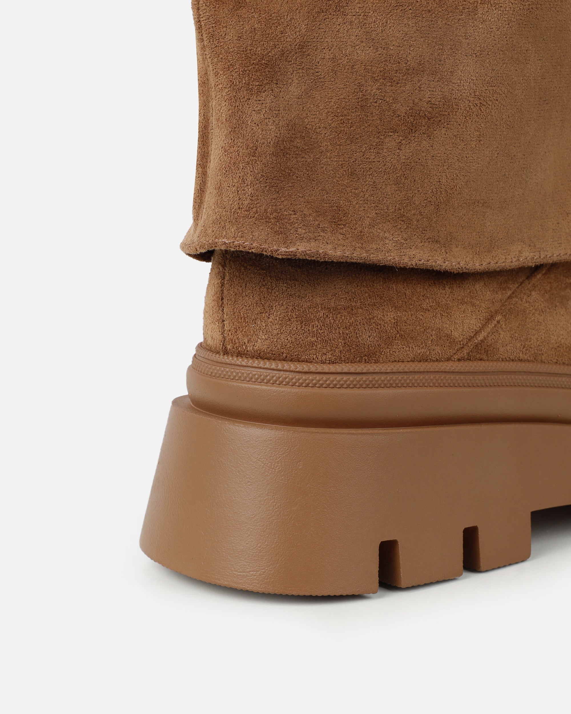 These faux suede fold over chunky boots are not only fashionable but also comfortable to wear. Featuring a suede fold over and a chunky sole. Our faux suede fold over chunky boots will elevate your outfit and keep you looking cute.