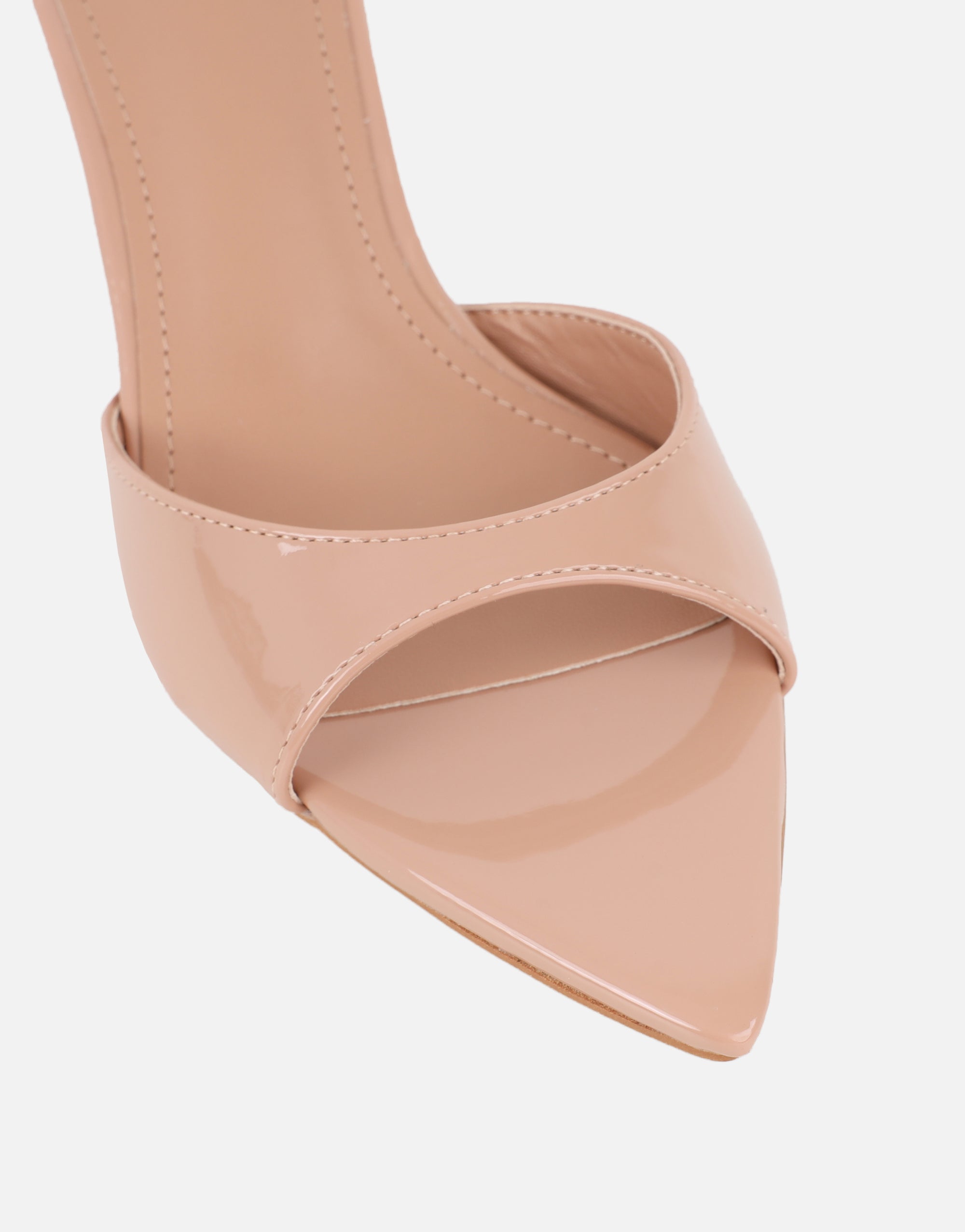 Step into retro glamour with Jerez, our patent low heeled mules designed for sunny strolls and rooftop weekends. With a glossy finish and a sweet peep toe detail, these slip ons are vintage inspired, designed to be paired with high-waisted capris, day dresses, or your favourite vintage denim for a look that’s effortlessly chic and full of nostalgia.