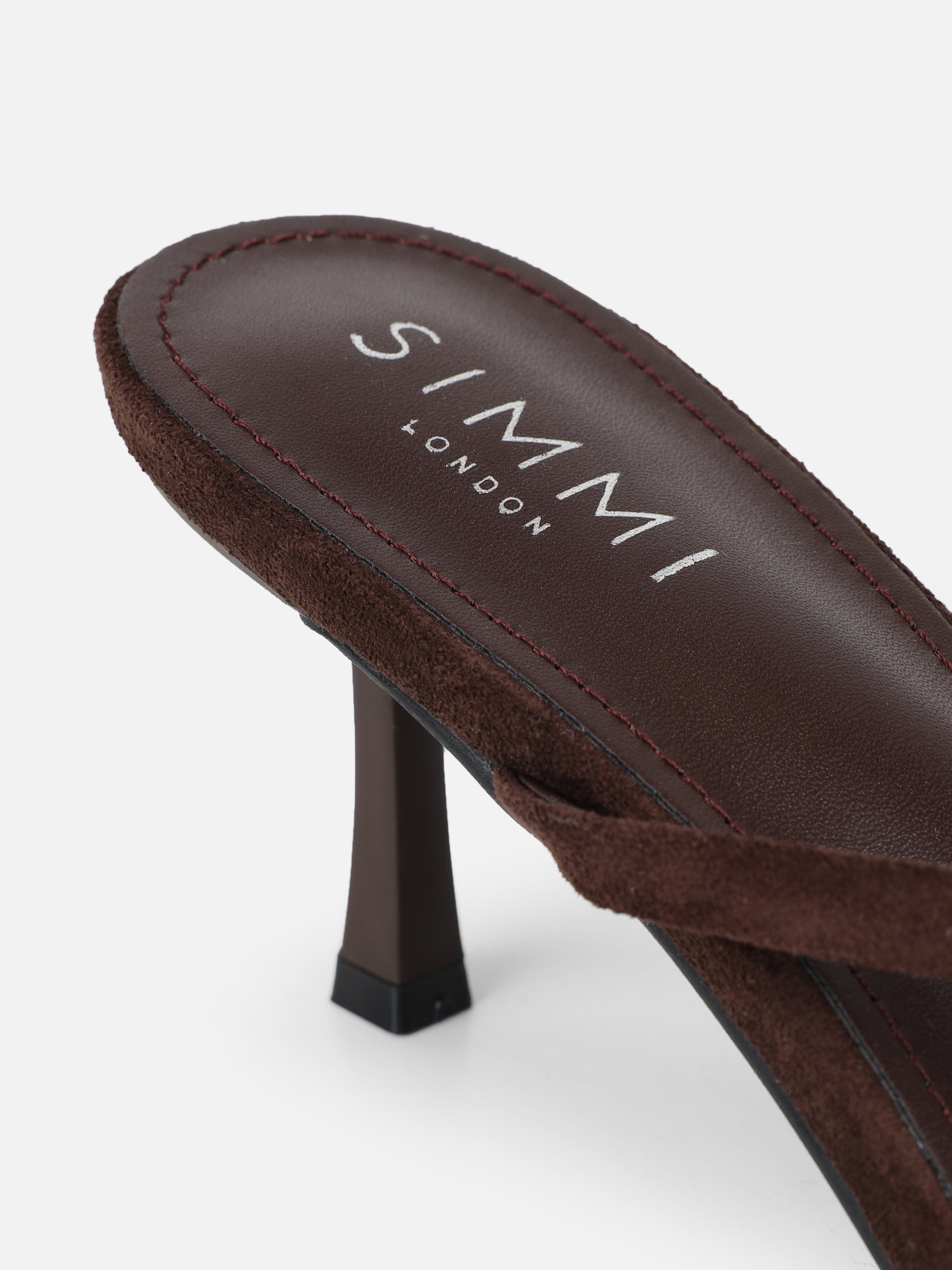 Step into effortless elegance with these brown faux suede heeled sandals. Featuring a chic knot detail and easy slip-on design, they add the perfect touch of sophistication to any outfit. Ideal for dressing up your day or adding polish to an evening look.