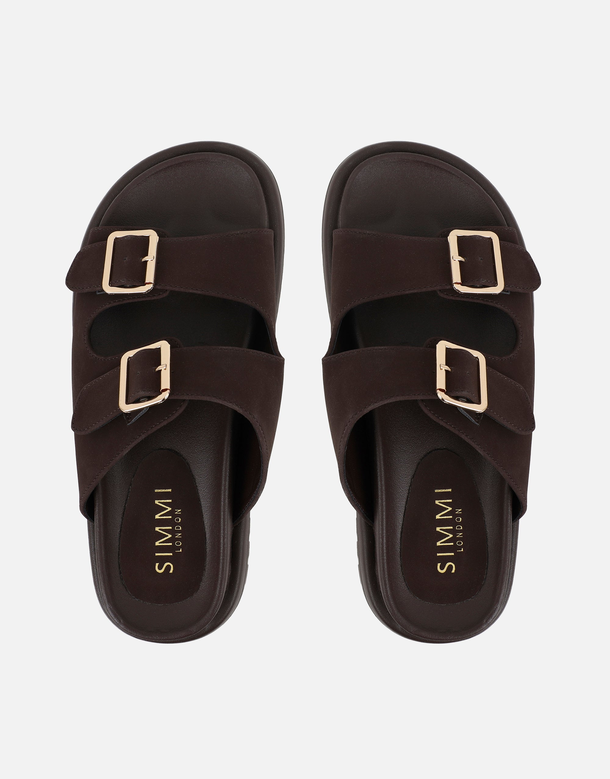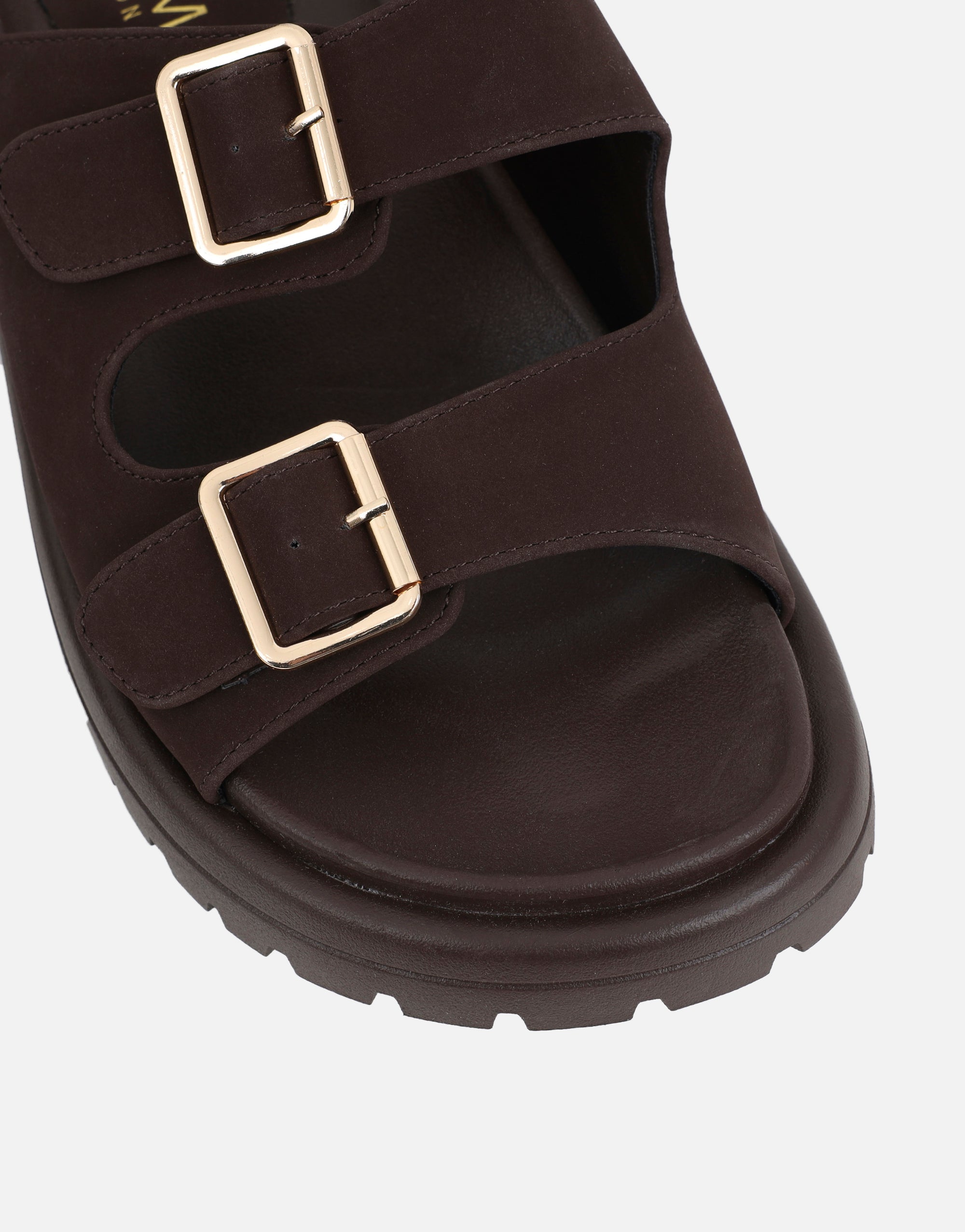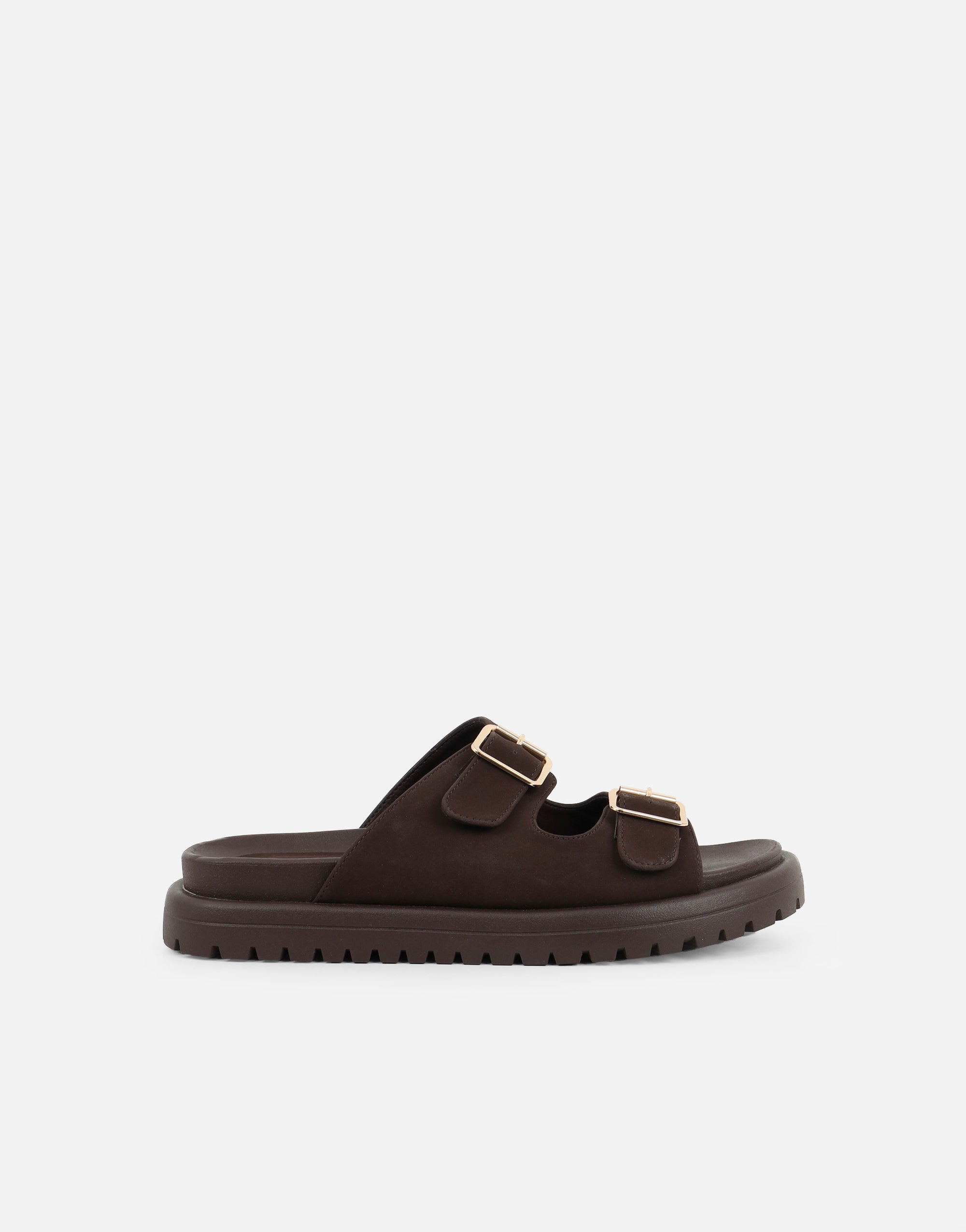 Step into easy, everyday comfort with these suede sandals, designed for a laid-back yet elevated look. Featuring a chunky sole and double buckle detail, they offer a slip-on fit that’s perfect for effortless styling.