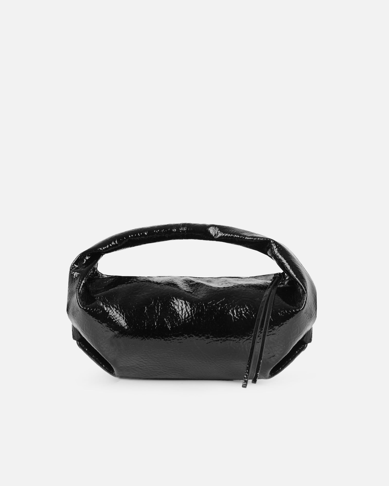 A fresh take on the crescent shape, this bag brings all the drama in a more compact, handheld design. With its oversized yet soft sculpt look, it’s the perfect mix of bold and wearable. With a shiny, crushed faux leather finish, it’s a standout piece for day to night styling. Pair with our bag charms to personalise your bag.