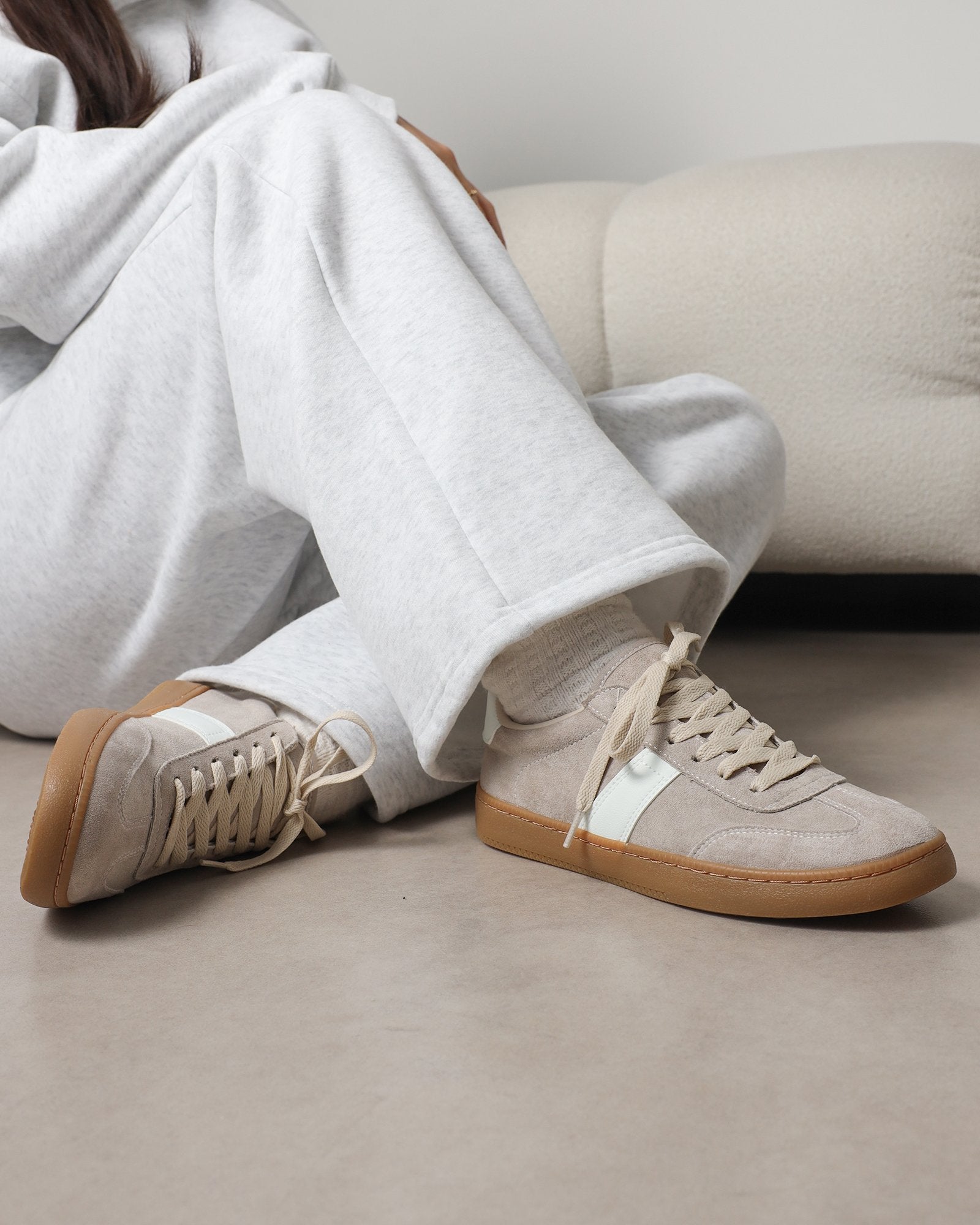 Meet Siesta, our latest trainer obsession. These trending grey suede trainers are a must-have for our comfort-first girls. Featuring a chunky brown platform, grey laces and subtle white stripe detail. Perfect with wide-leg joggers or your fave lounge set for an effortless, on-trend look.