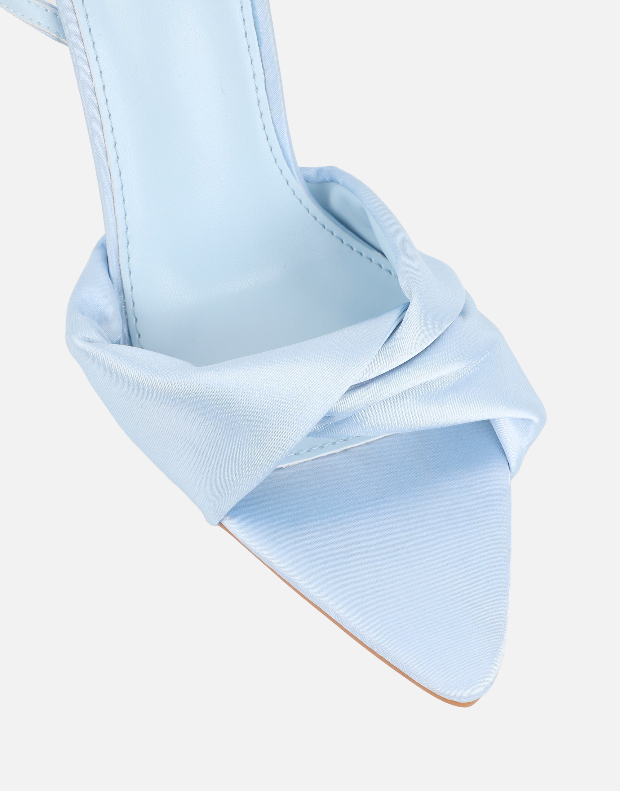 Blue Satin Ruched Heeled Sandals