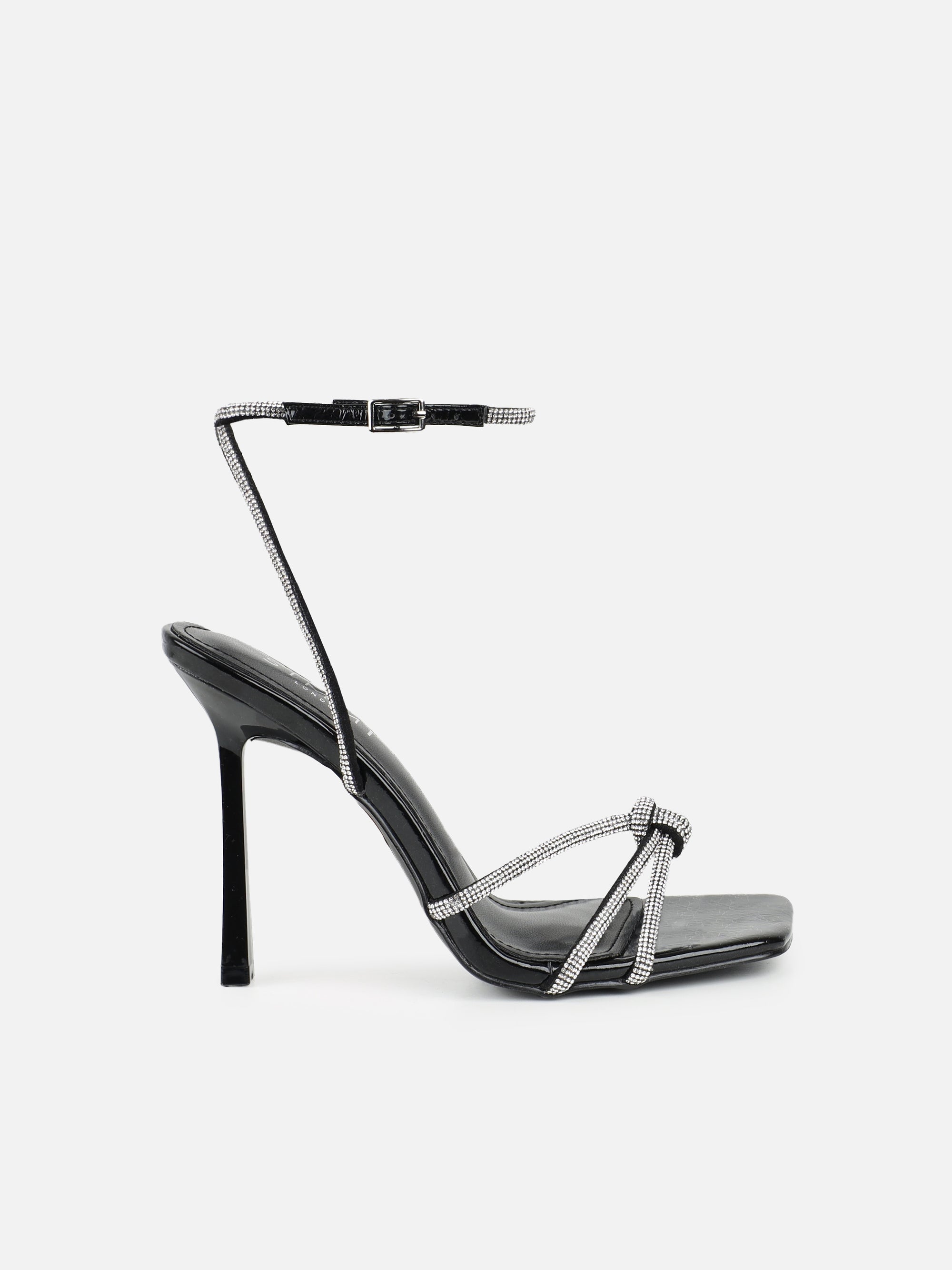 Black Diamante Knot Heeled Sandals
