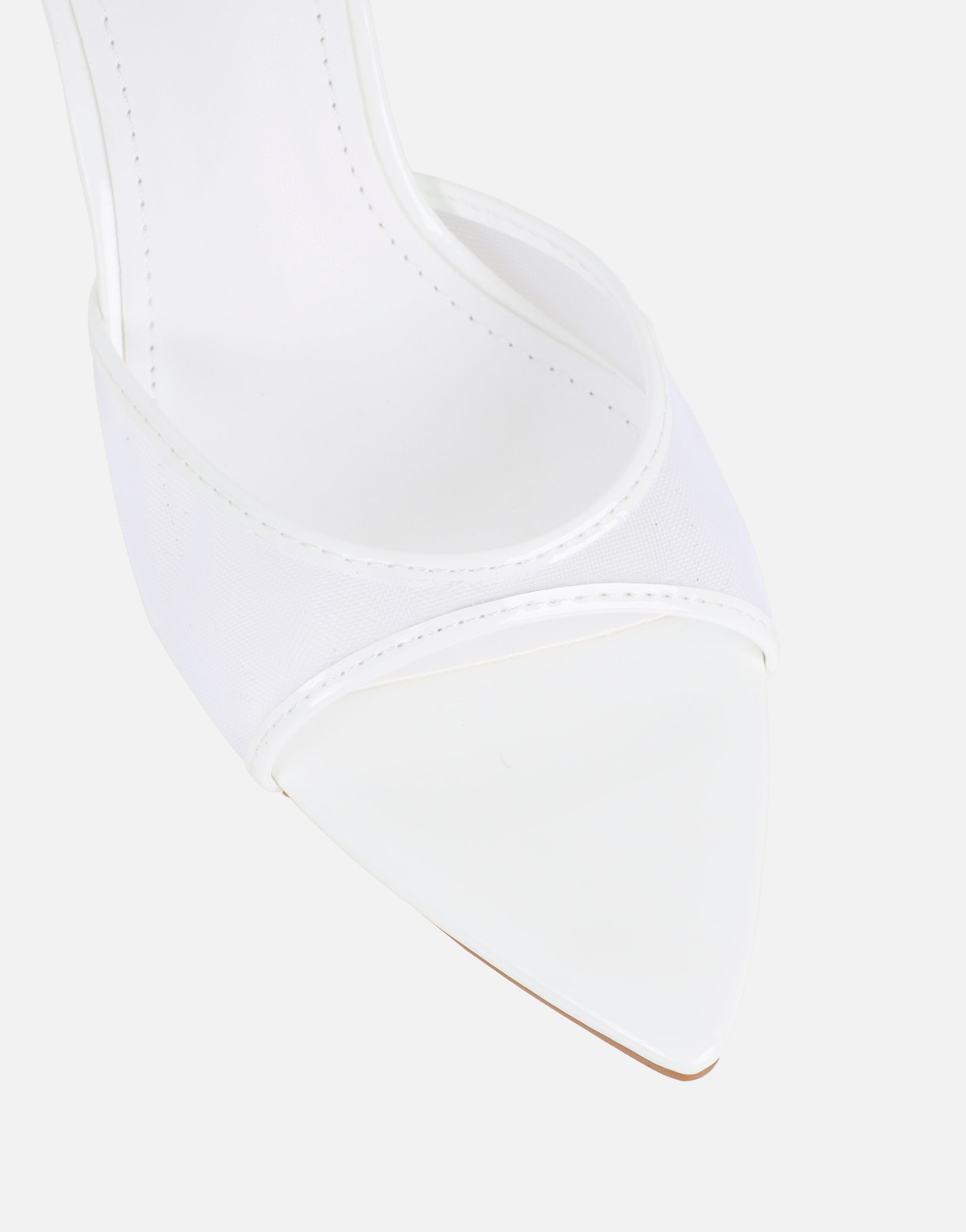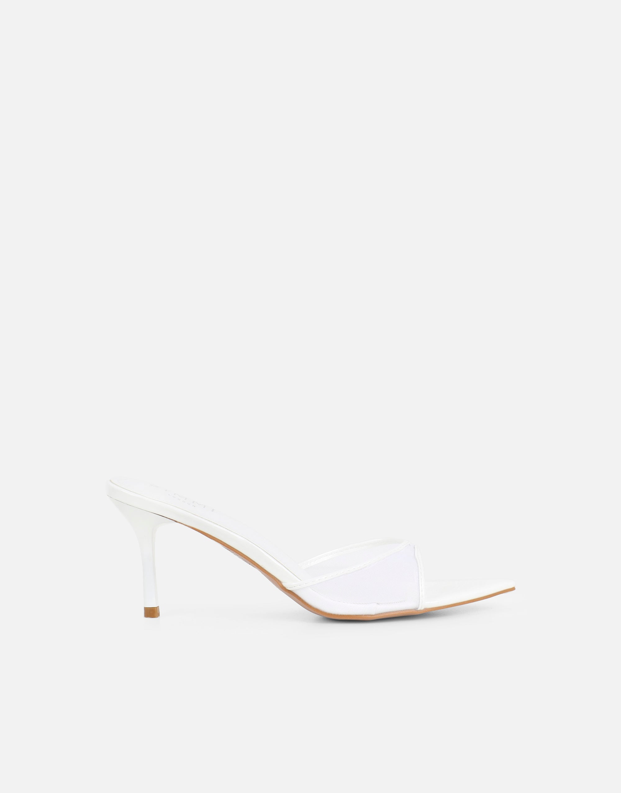 Step into understated glamour with our Lauri kitten mules, designed for style and all night comfort. Featuring a delicate mesh finish and flirty peep-toe, they effortlessly elevate both party dresses and casual denim looks.