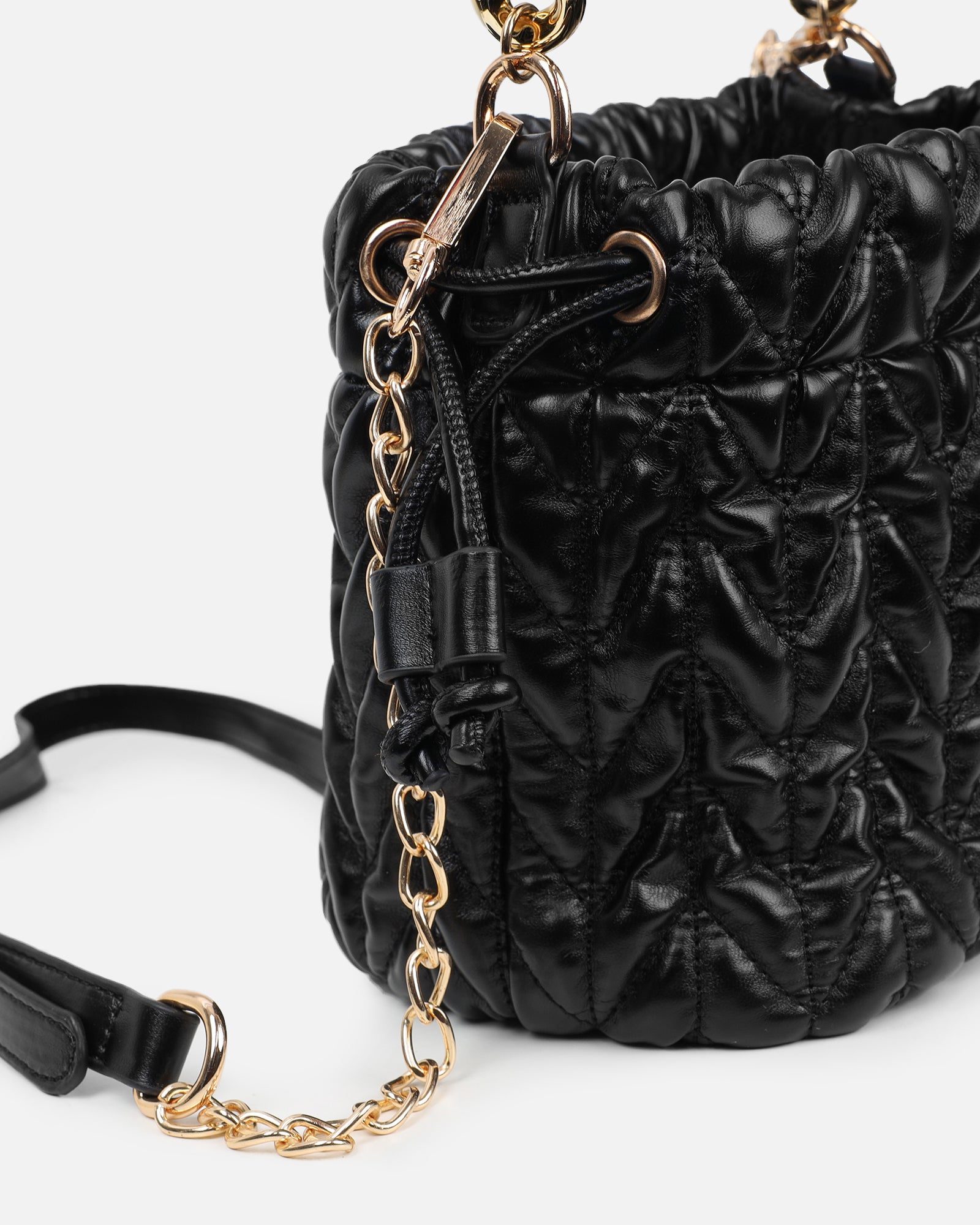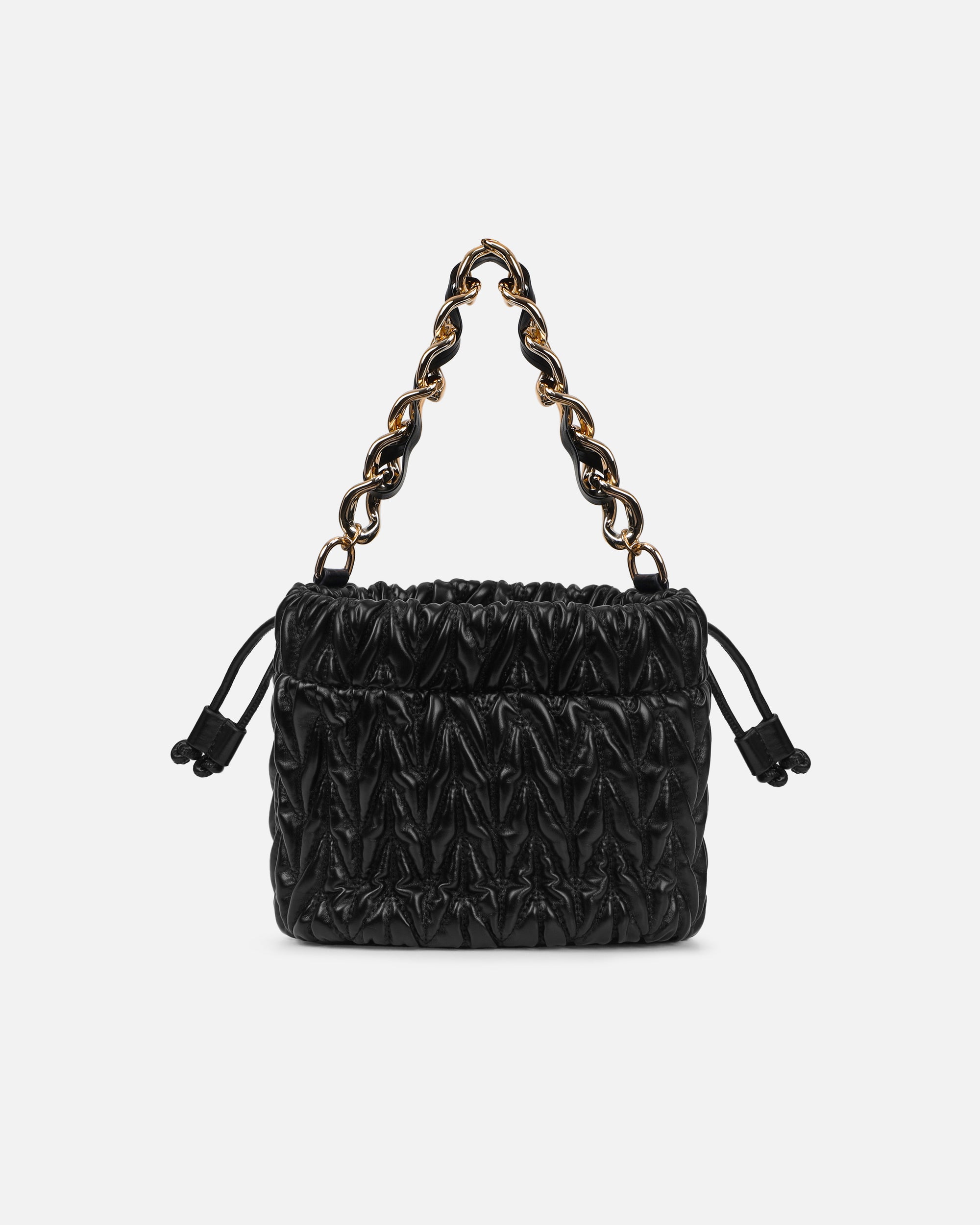 Switch it up this season with our Amanza Mini Chain Bucket Bag. The bucket design is a new silhouette we're obsessing over, combined with chain hardware and textured detailing, we're loving the easy add to our statement styles. Opt for a versatile black shade, or go all-out with a metallic silver moment.