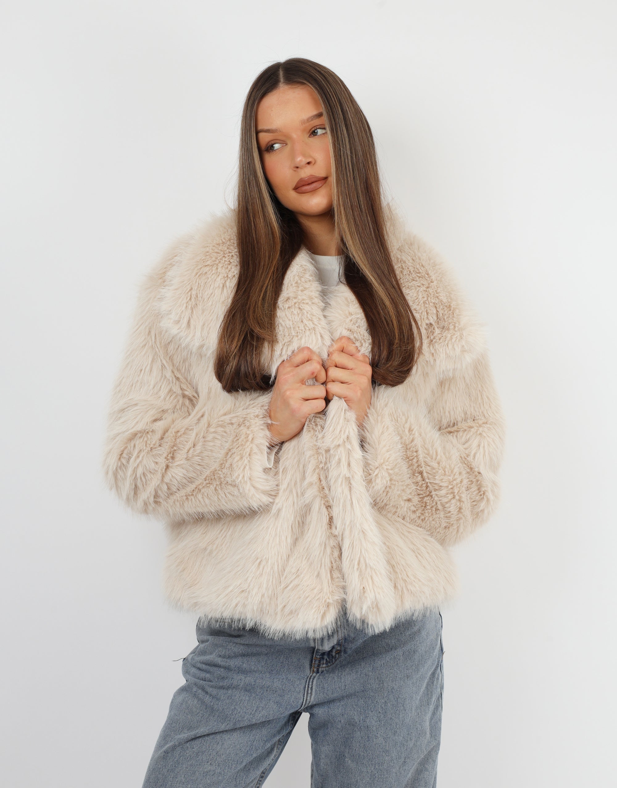 Turn up the cute factor with this waist-length faux fur coat, featuring an oversized collar that makes every outfit feel extra cozy. Crafted from premium faux fur, it’s soft, fluffy, and totally girl-approved. Whether you're heading out with friends or dressing up for fun, this coat brings the perfect playful touch to your look.