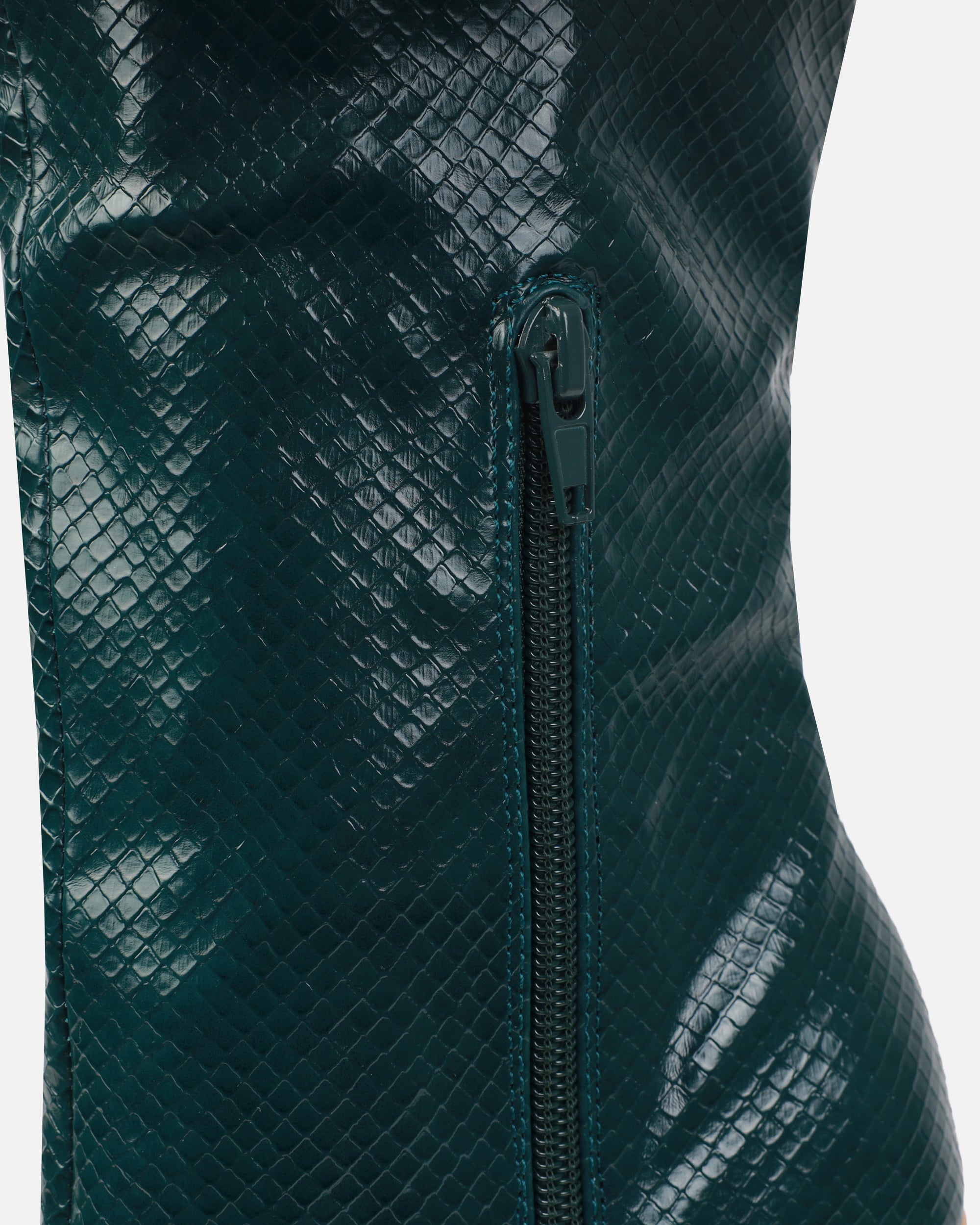 Green Faux Snake Print Stiletto Knee High Boots