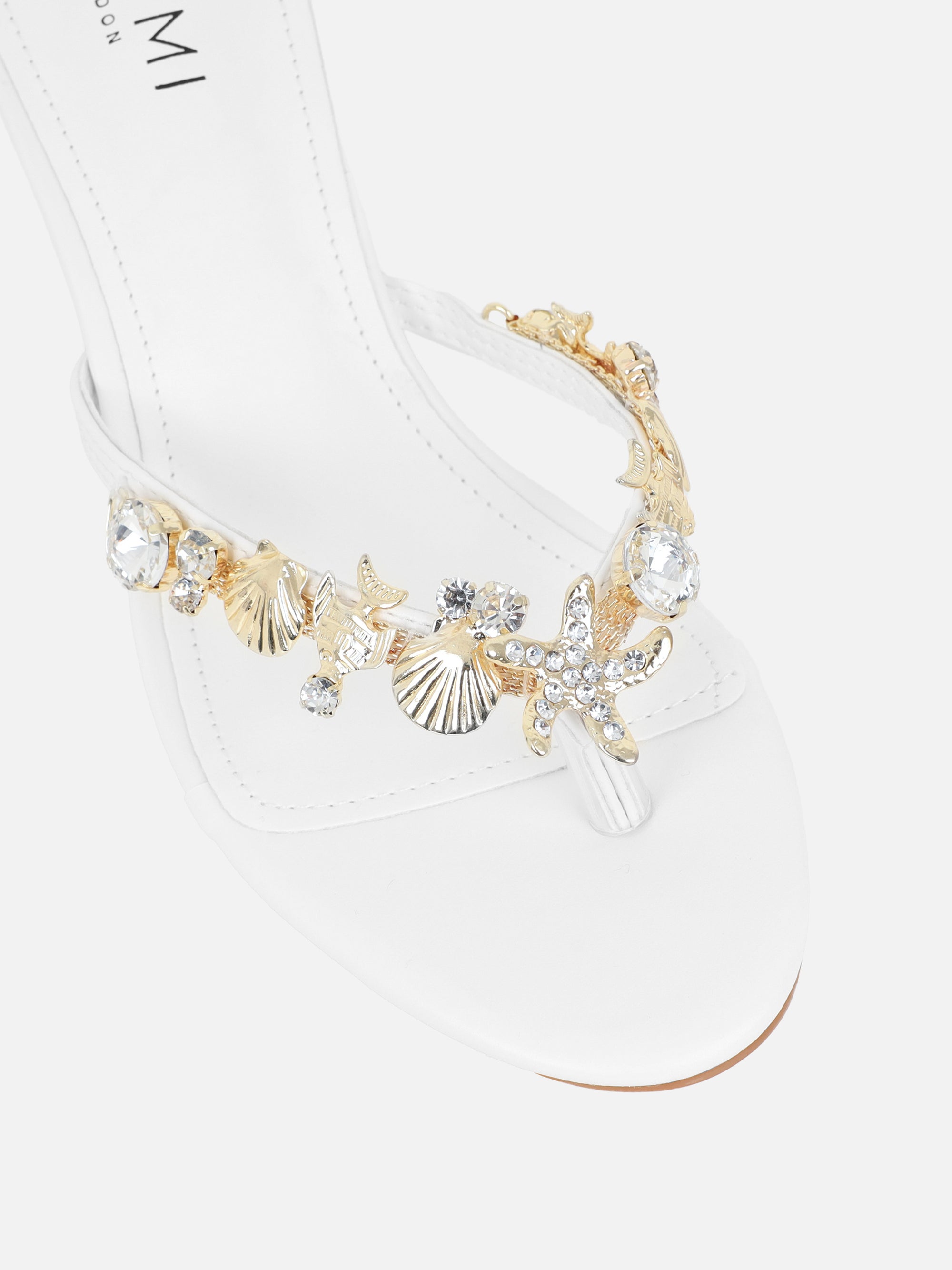 White Shell Detail Toe Thong Heeled Sandals