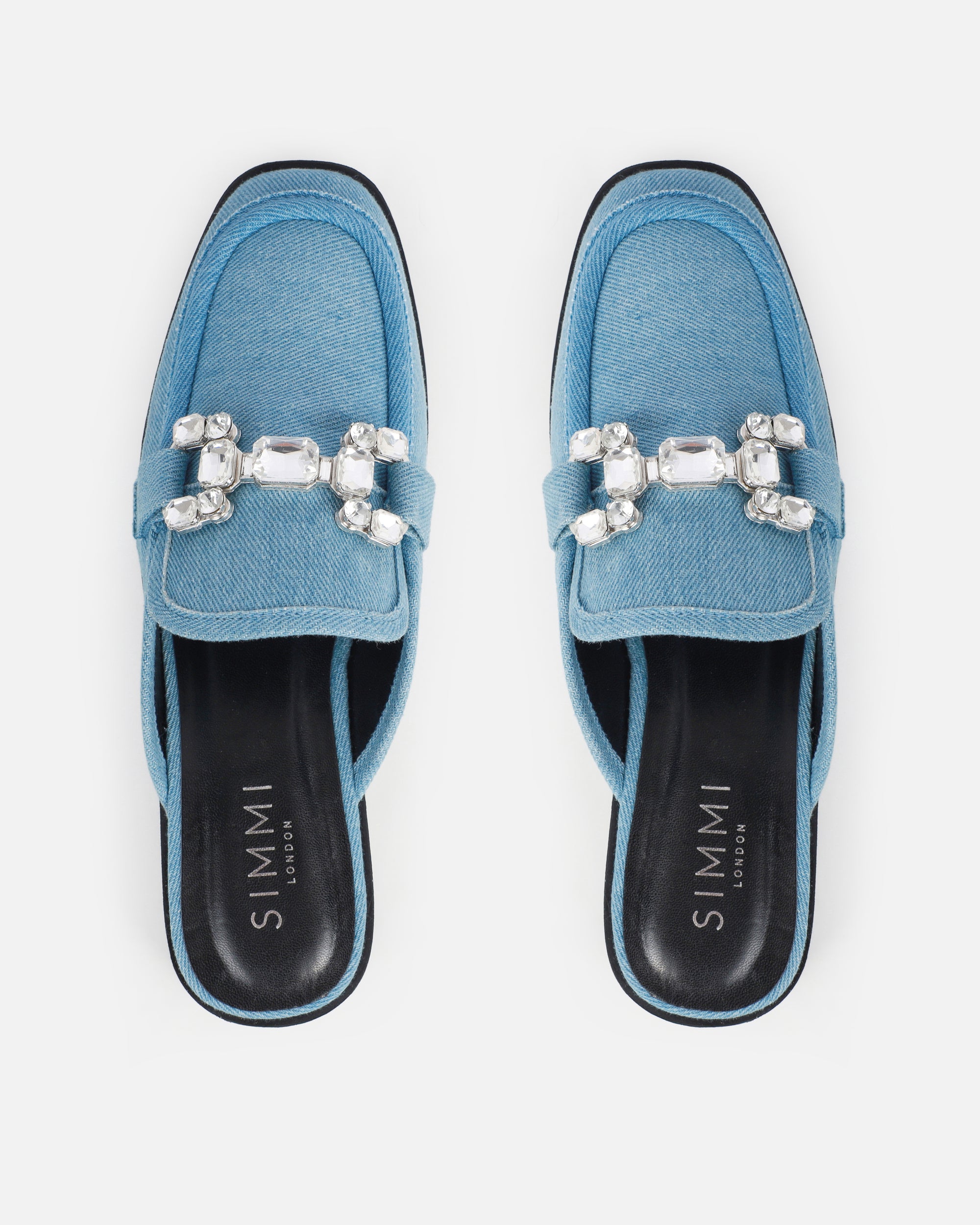 Elevate your outfit with these new season flats! Featuring denim look upper, square toe and gem detailing. Pair with jeans and a nice top, or a LBD for an effortlessly chic look.