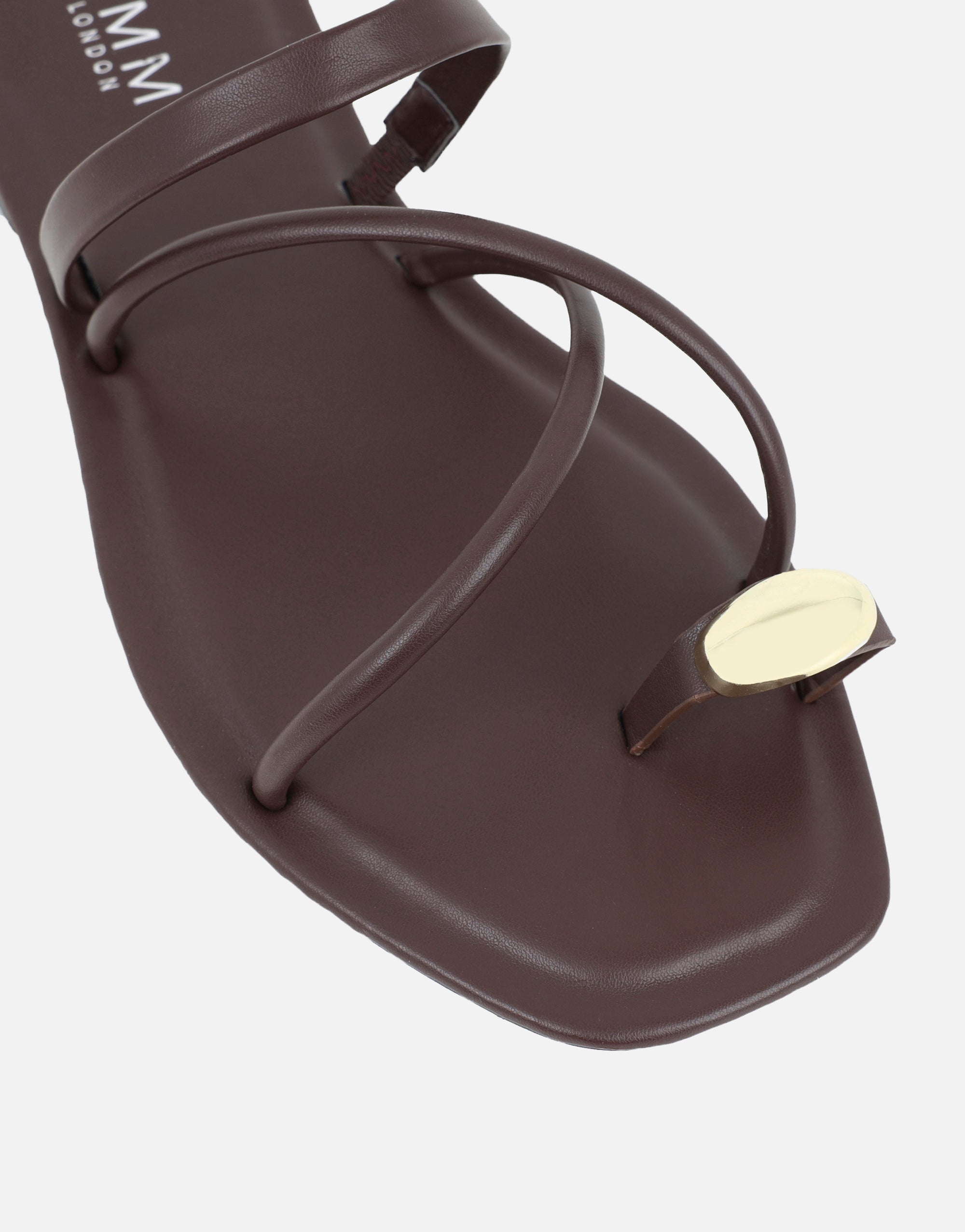 Brown Gold Toe Detail Flat Sandals