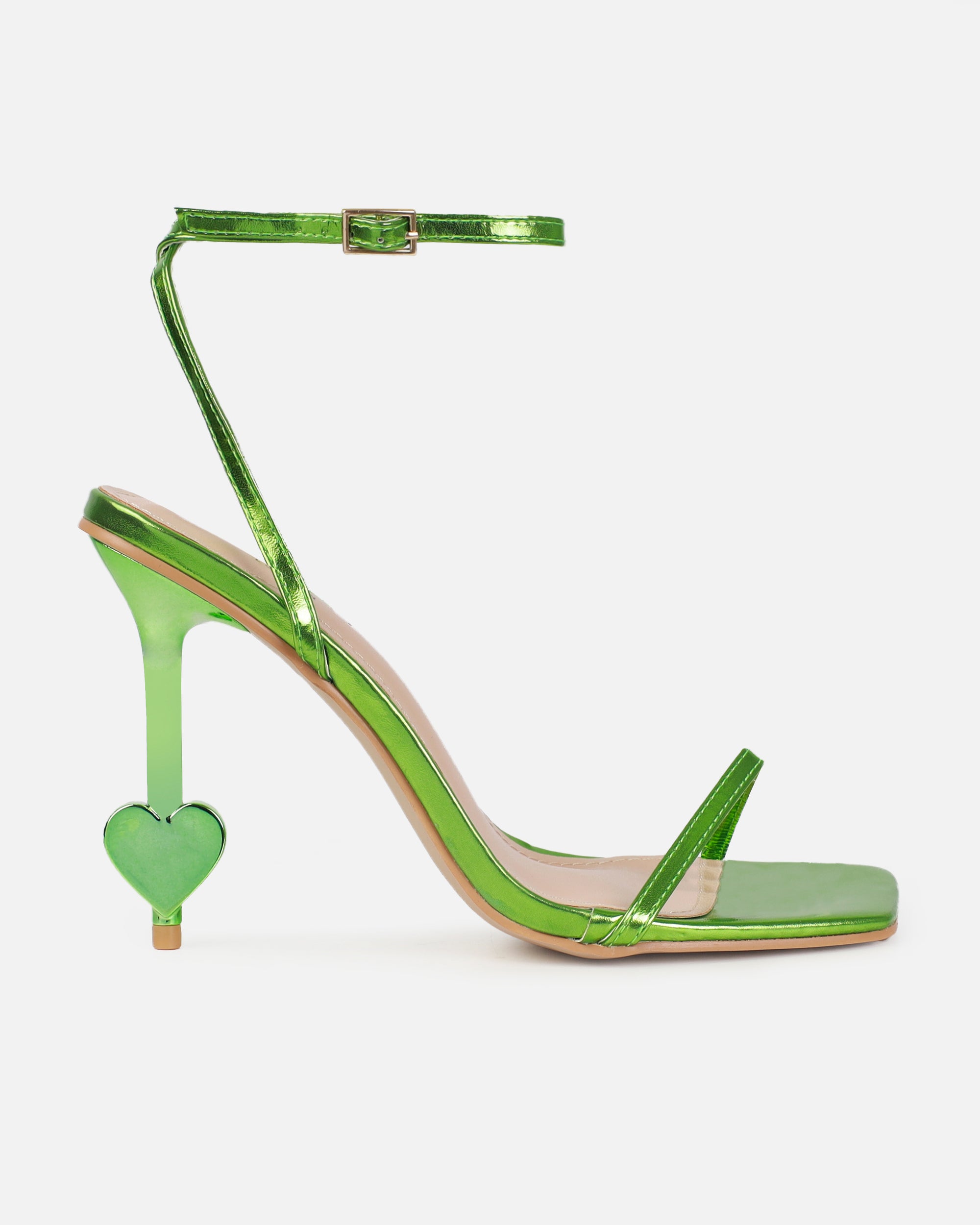 You'll be loving these stiletto heart heels. Featuring a square toe, ankle buckle strap and a stiletto heart heel. Wear yours with matching heart accessories.