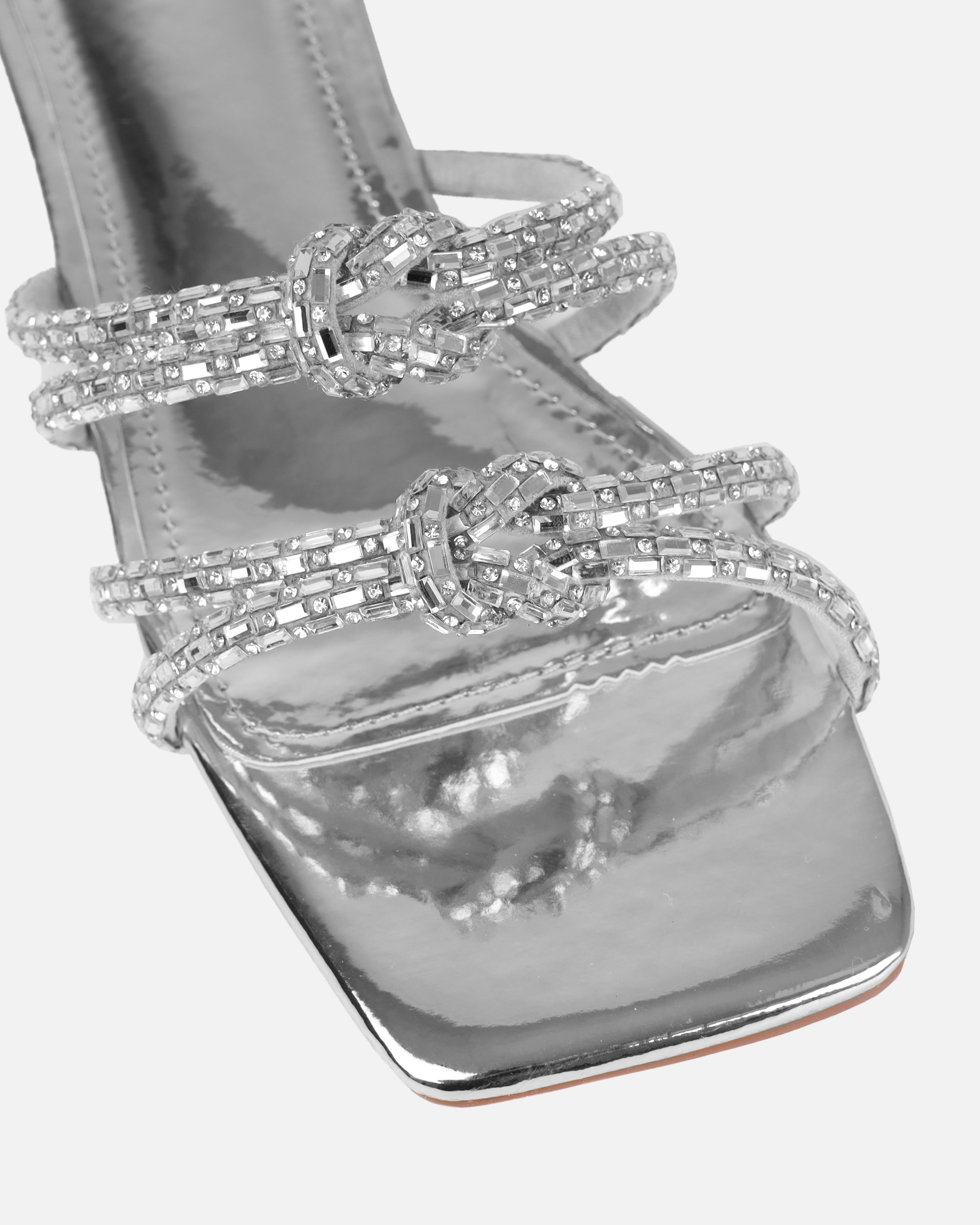 Your dreamy flats are on the way! Featuring a square toe and double diamante gem knotted front straps. Wear these for all your summer occasions.