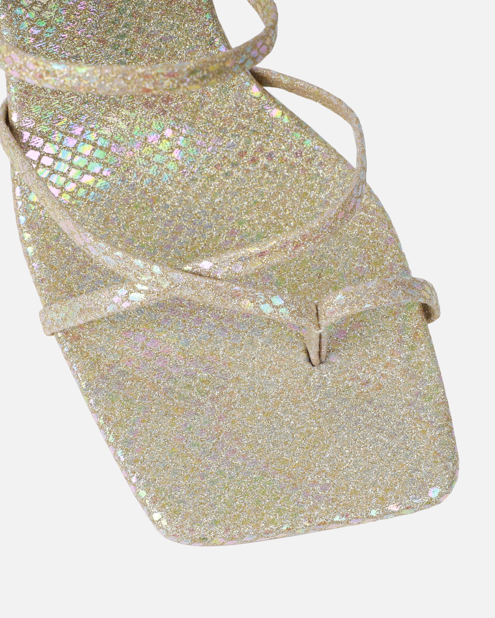 Gold Shimmer Faux Snake Strappy Mid Heel Mules