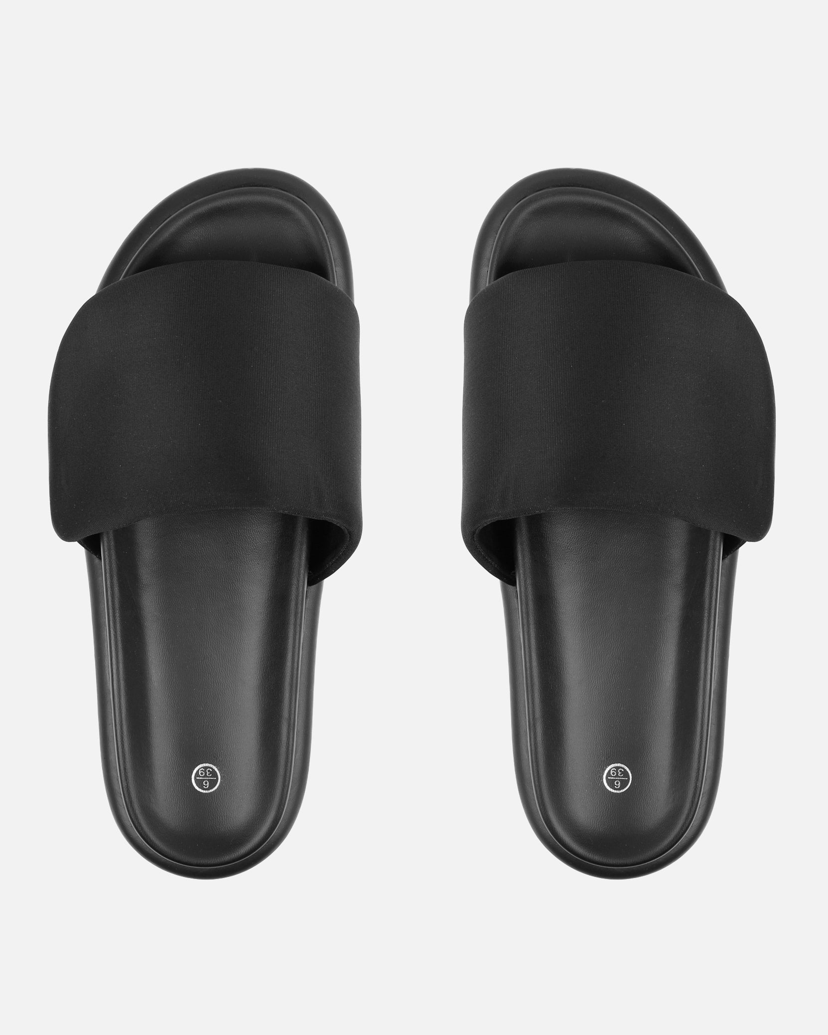 Step into comfort and style with our black padded slider sandals. Featuring a padded front strap. These black padded slider sandals are perfect for lounging around and unwinding in style.