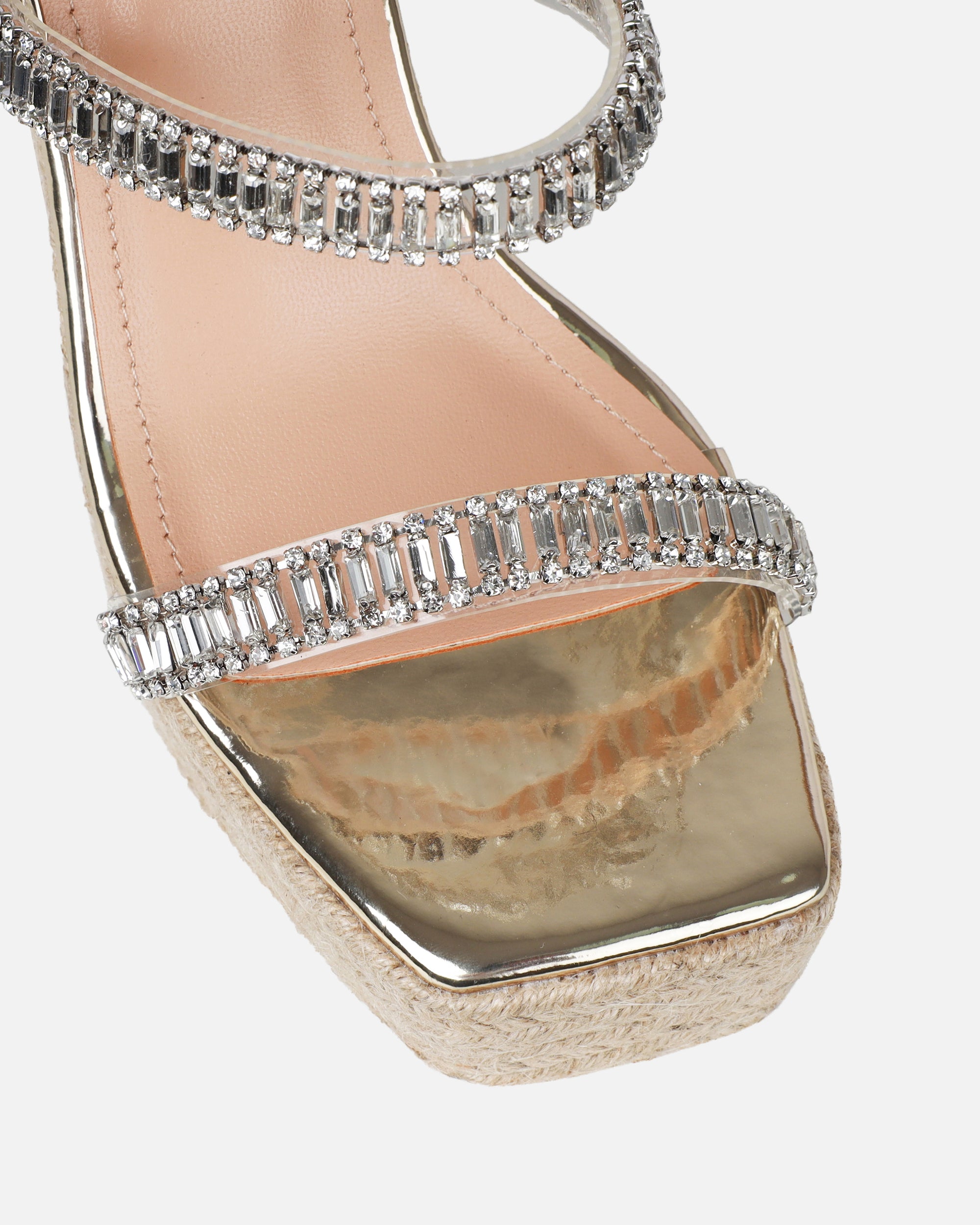 Meet the diamante wedge you need in your summer shoedrobe! Featuring double diamante straps, a square toe and a platform espadrille wedge. Whether you’re heading to a pool party or out for a sunset dinner, these wedges are the perfect match for any summer outfit.