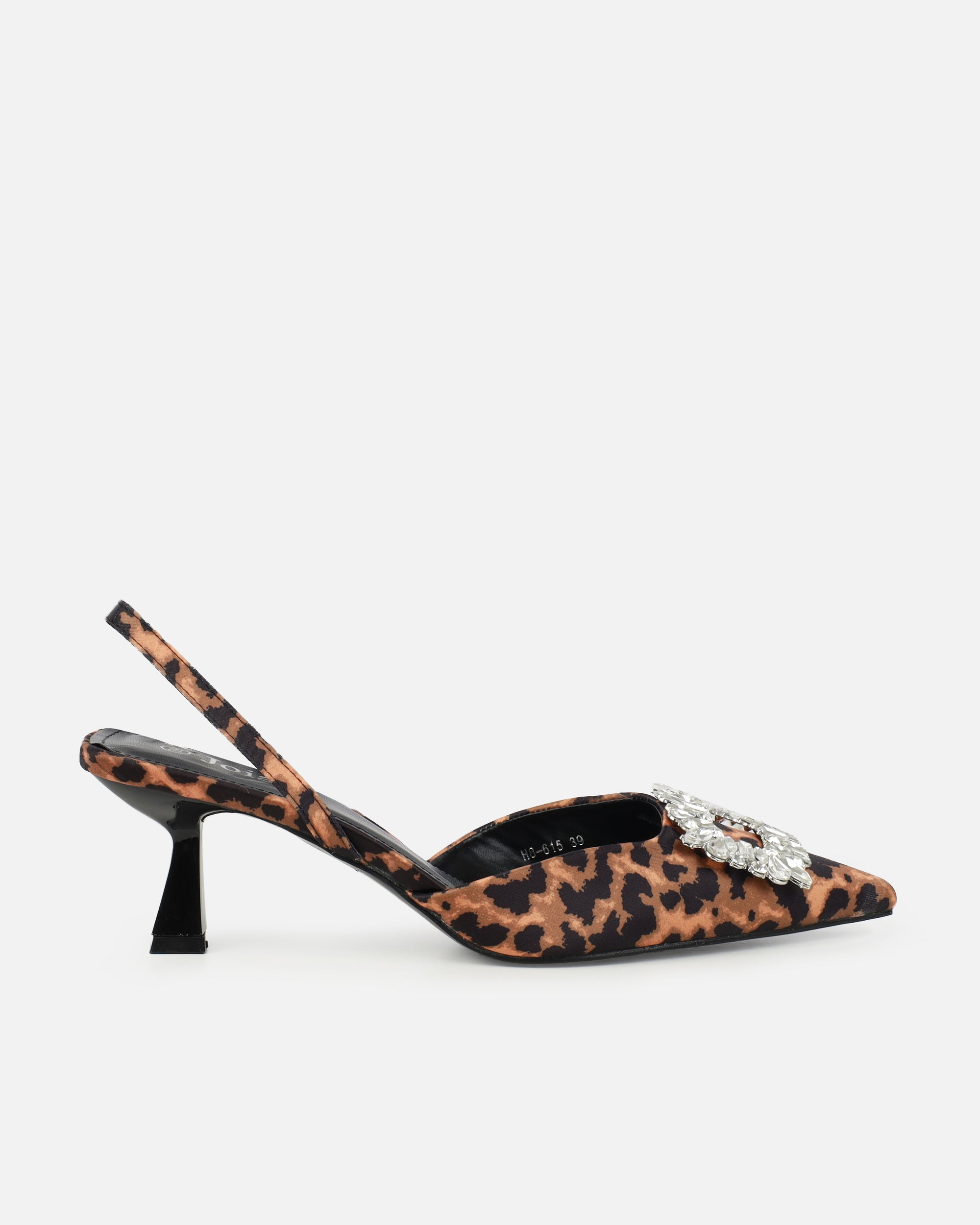 Faux Leopard Print Diamante Low Court Heeled Shoes