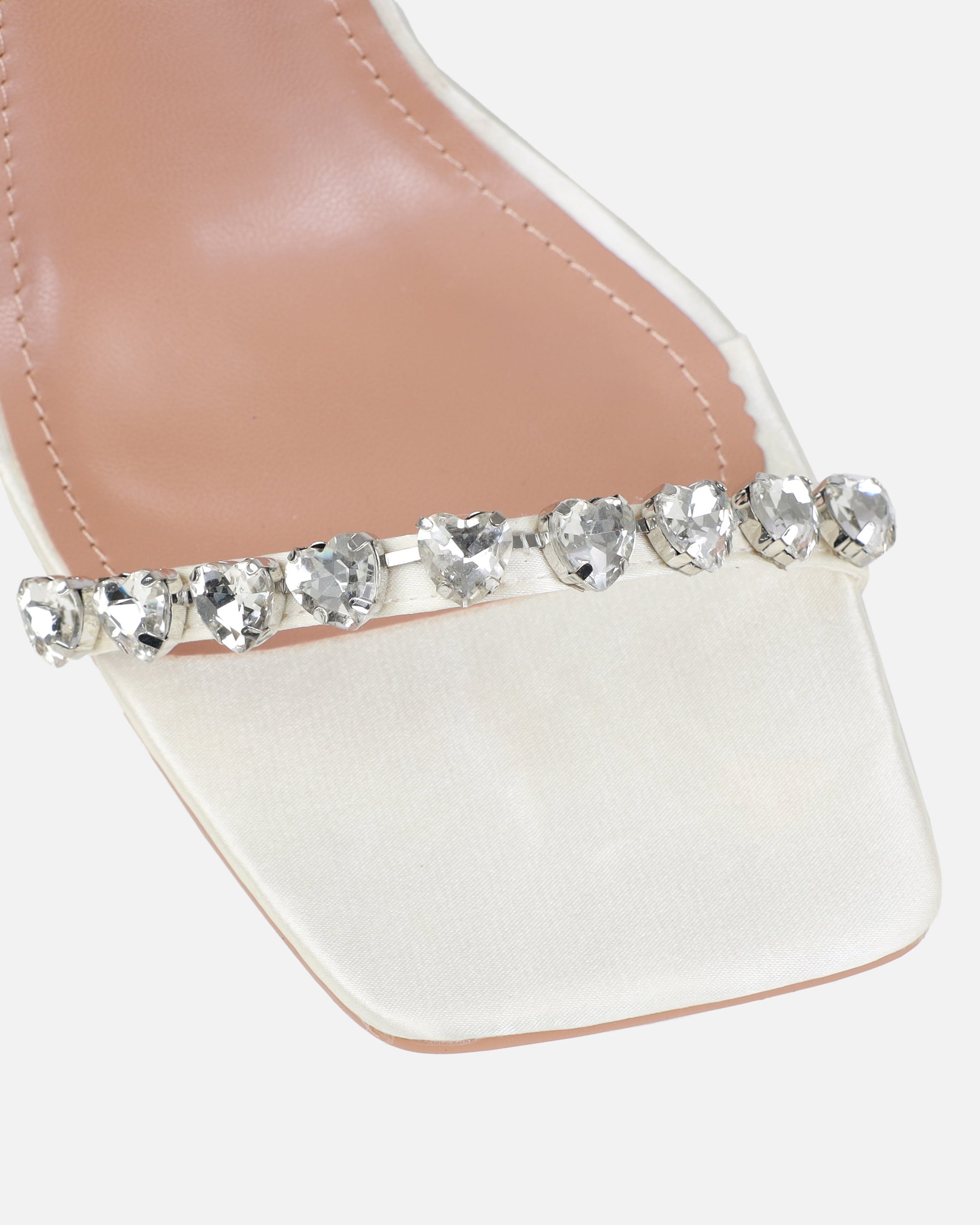 Crowe Eternal Ivory Satin Heart Diamante Mules