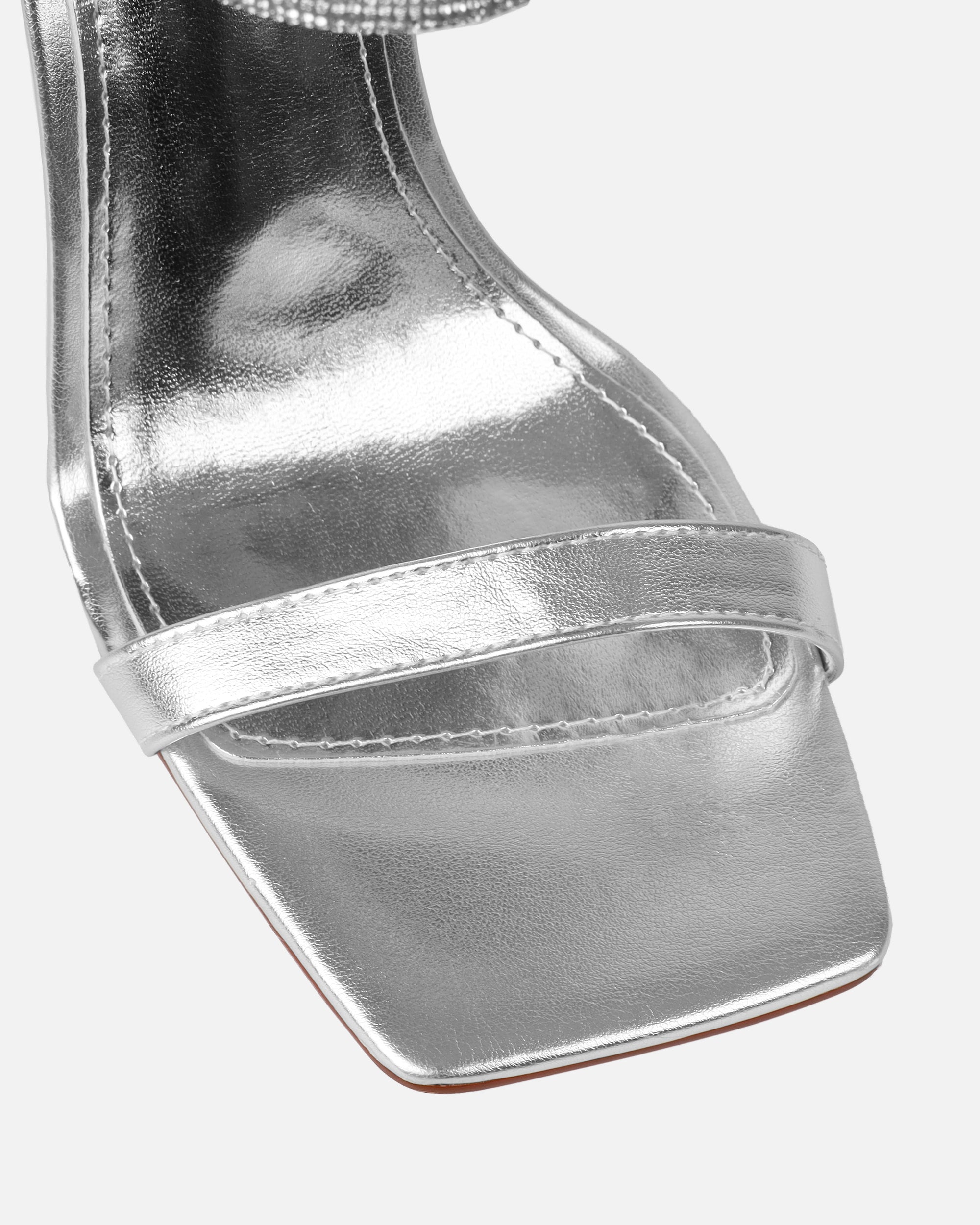 These diamante strappy heeled sandals are the ultimate statement piece that your wardrobe needs! Featuring diamante multi straps and a stiletto heel. Add a touch of bling to your outfits!