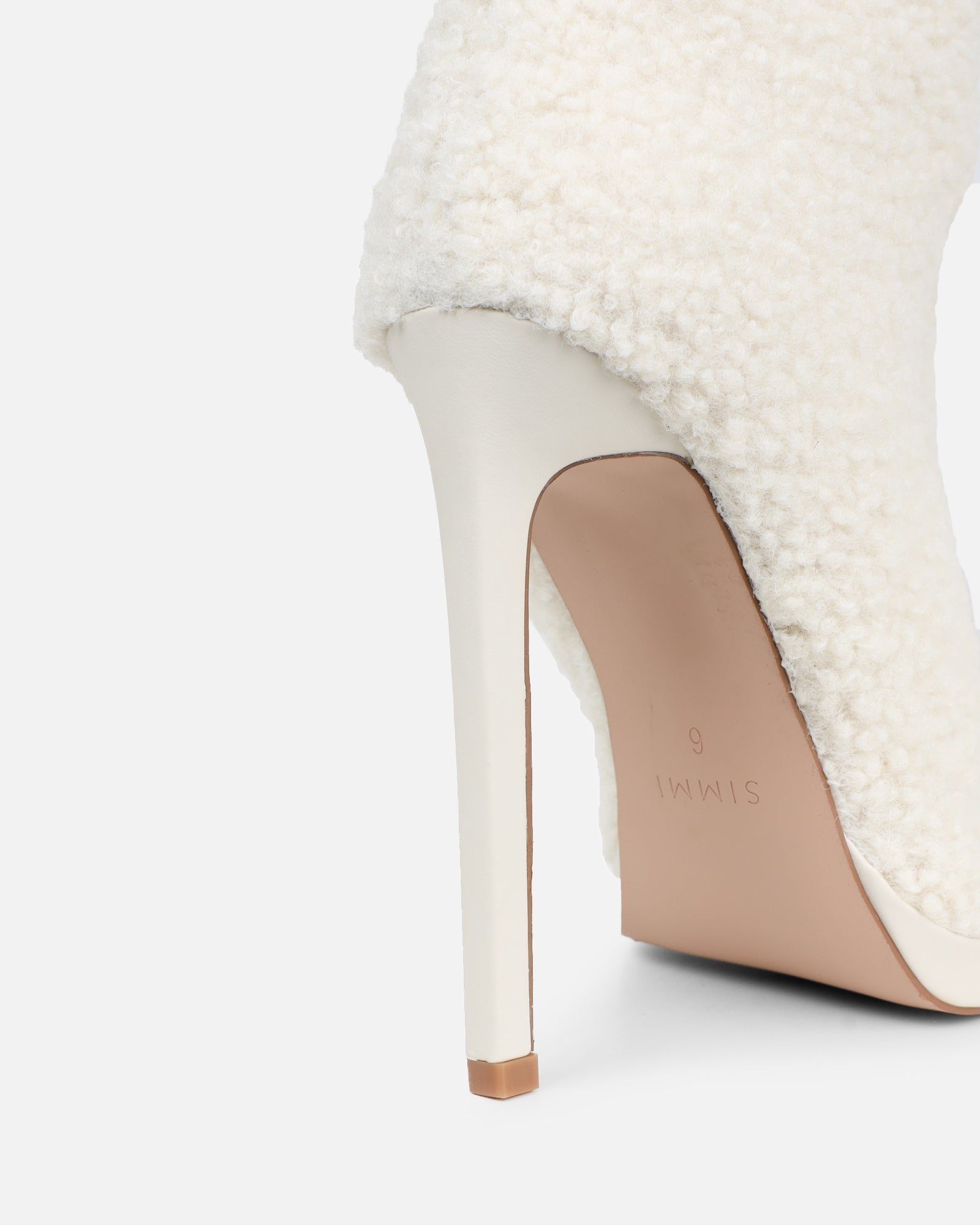 Our Hamilton cream borg over-the-knee boots are your new season staple! Stay classy and cozy with these chic stiletto, pointed-toe boots that effortlessly blend style and comfort.