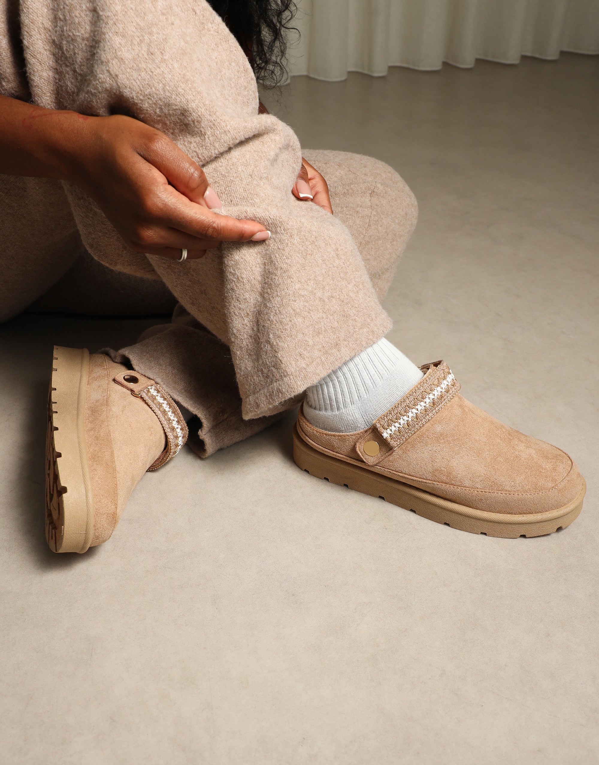 Your new go-to cosy slippers are finally here. Whether it’s a lazy Netflix night or a long stroll outside, they’ll keep you comfy and warm all season. With a soft suede-look finish and chunky tread sole, they’re the perfect blend of snug and stylish.