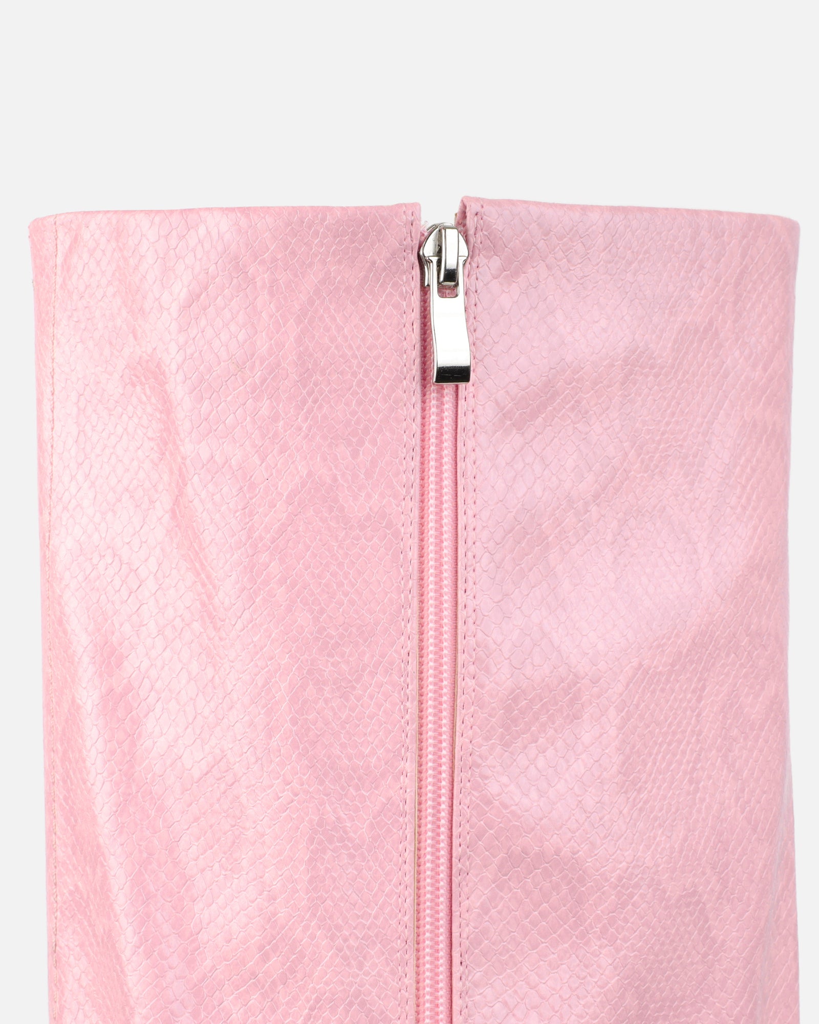 Turn heads at every concert and festival this season with our pink faux snake effect stiletto heeled sandals. Featuring a round toe, fold over and a stiletto heel. Pair these pink faux snake effect stiletto heeled sandals with a cute mini skirt and a fitted top.