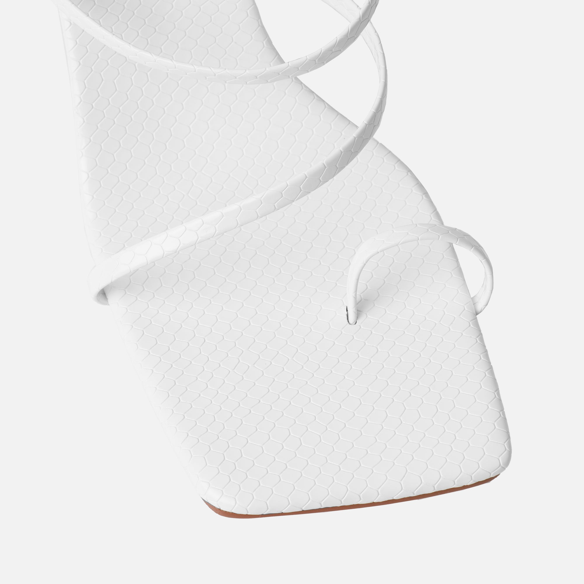 Wide Fit White Faux Snake Print Double Strap Mid Heels